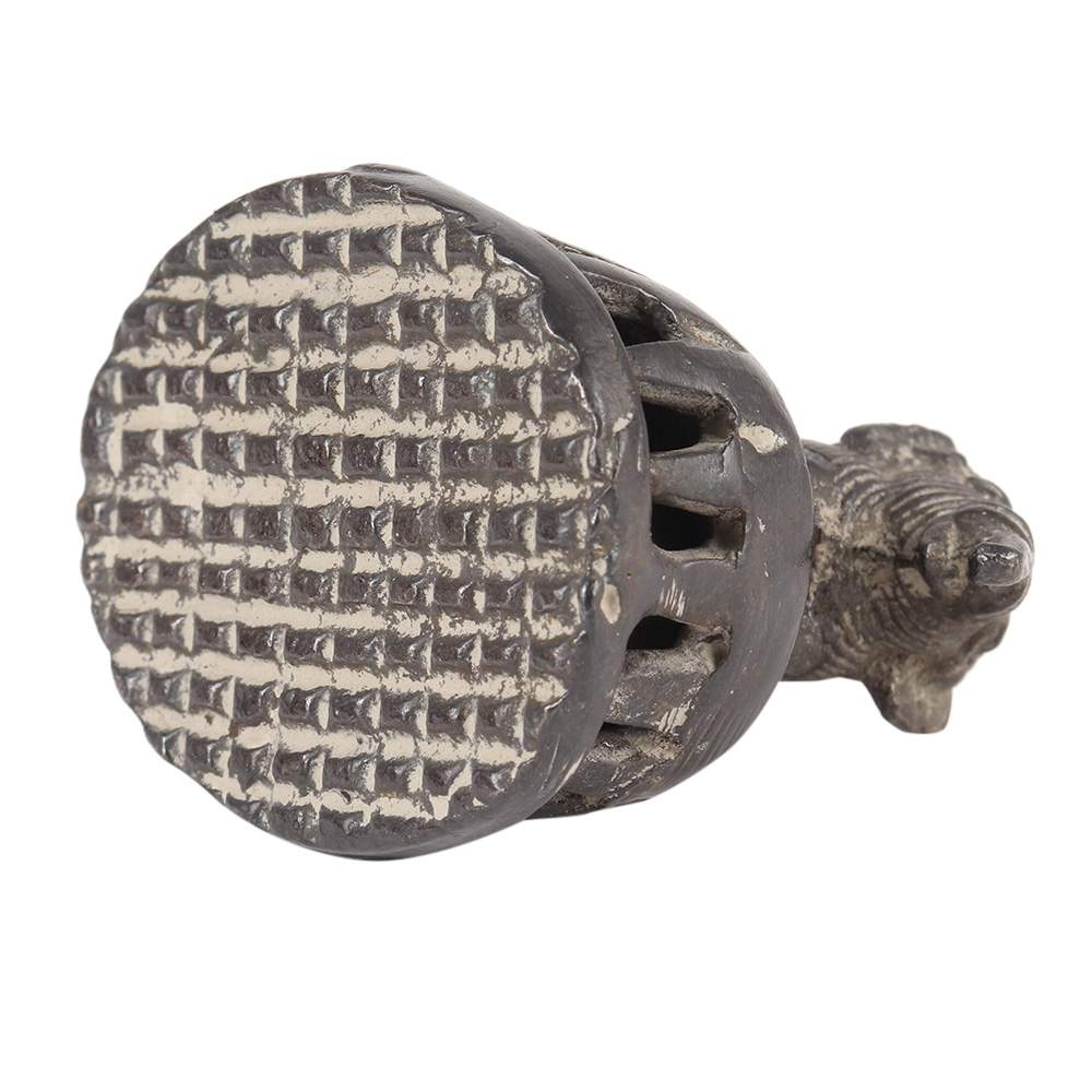 This was usually used among women when bathing to wash their foot, which was driven primarily by being barefoot. It really is made of cast brass and consists of a platform with punctured mesh work and a rustic, chipped base with an ornamental cast figure usually an animal  that serves as a handle. Tiny stones or metallic pellets are placed within the pedestal, which produces a noise when it is used to alert others in the area that women are bathing around.
