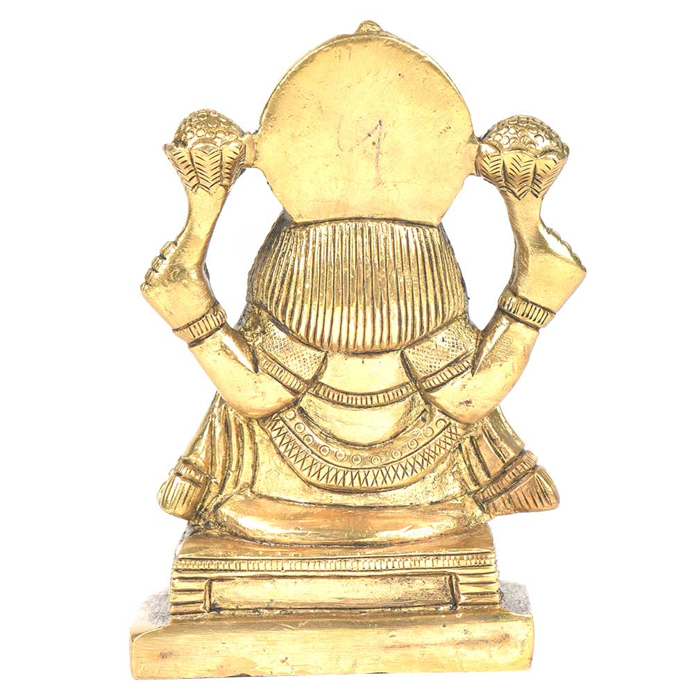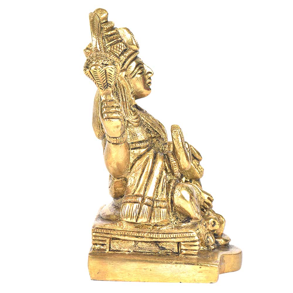 Goddess lakshmi can be seen sitting on a raised platform is made of brass by the skilled craftsmen of India. This type of figurine of goddess lakshmi is very rarely found in which owl is seated. It can be used for worshipping, gifting it to friends and relatives etc.