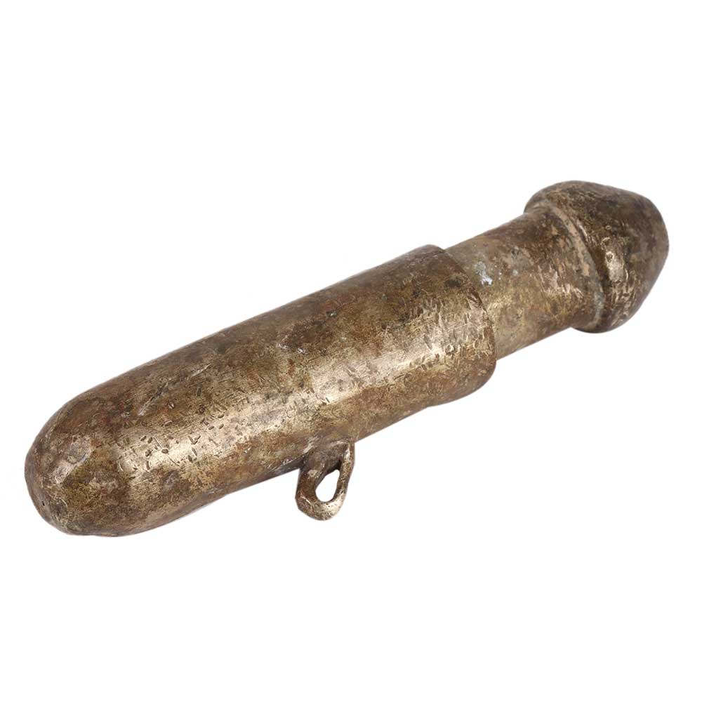 Betel lime box made of brass Persian Chuna Dani is a small cylindrical portable box made by local artisans for tobacco carrier storage or small decorative box. It is heavy and beautifully crafted by an artisan. The fit is snug. If it's completely shut, it needs to be pulled to open. It appears to have some age to it.