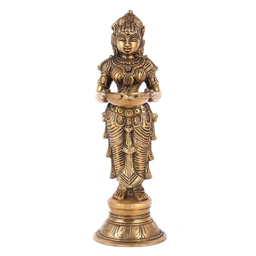 The handmade indian brass oil lamp is ideal for placing on your altar or table. A traditional oil lamp is also known as a diya. The diya is an oil lamp that burns vegetable oil or ghee Indian butter and has been used as a source of light and ornament since ancient times.