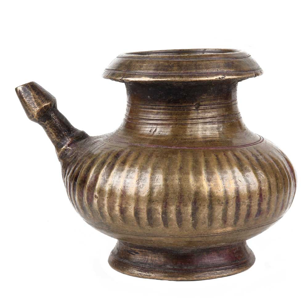The holy Water pot is made of brass and has a spout to pour out the liquid stored in the container. It is an ideal Kitchen decoration, table decoration, hotel, restaurant and spa decoration, Diwali gifts, wedding gifts for loved ones.