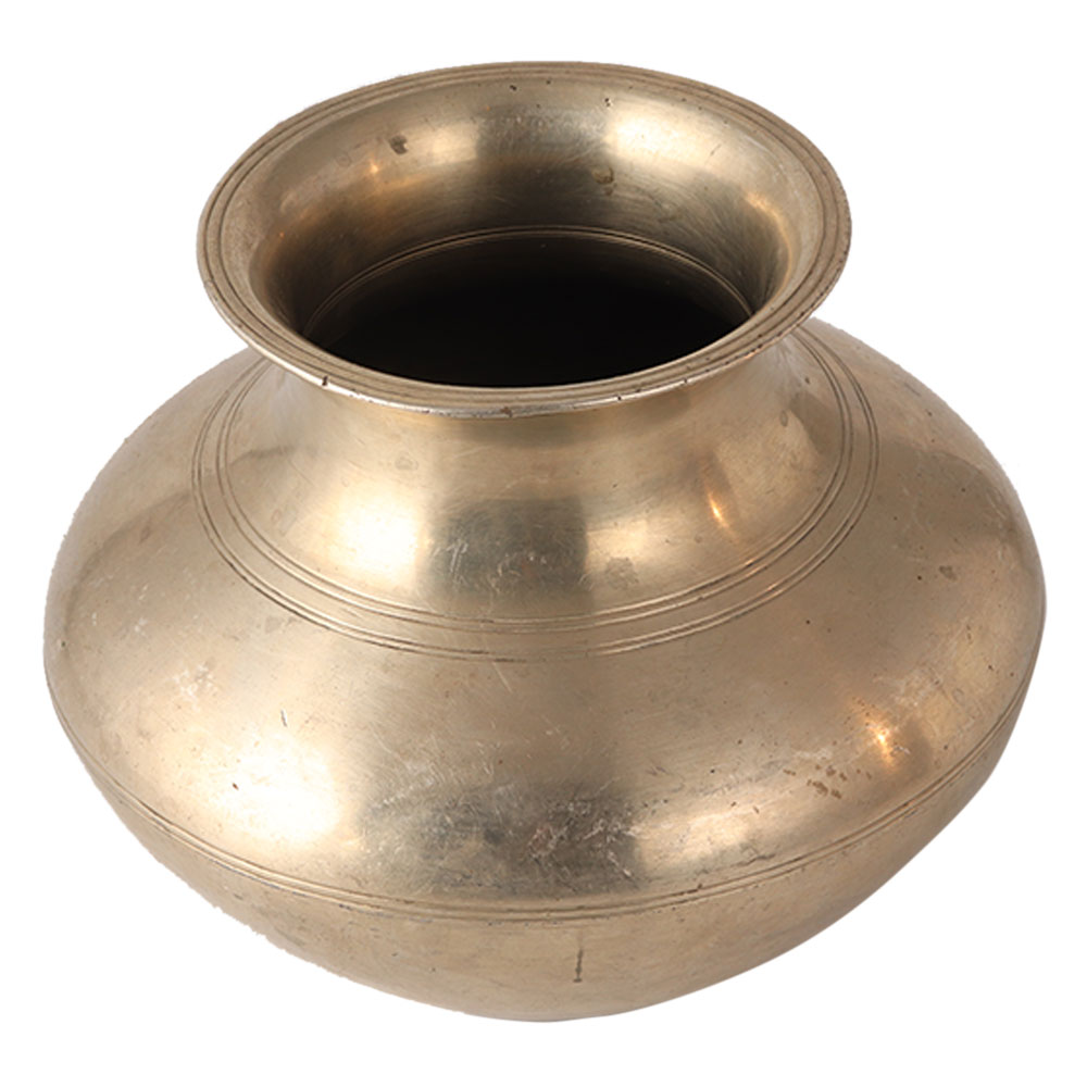 This plain Indian Gangajal water pot has a shiny yet faded look. It has a flat bottom to hold on the surface. It has a muscular look that sets it apart from other water pots. Use it for rituals, as decoration or to worship God.