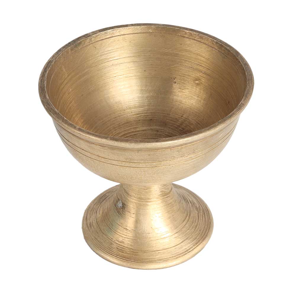 Give your interior a seductive look by placing this exquisite decorative piece on the table or shelf. It has a golden finish and a stand to keep it on the surface. Brass cups have been used since ancient times during havans, rituals and auspicious functions. They are used to store milk or holy water. Place this incredible piece in the eastern or northern direction of your home and it will spread positive energy in the surrounding. It is handcrafted by highly skilled and experienced Indian artisans from South India and is made of high quality brass, which gives the decoration a long lasting impression. A wonderful gift on special, festive and auspicious occasions for your family, friends and relatives.