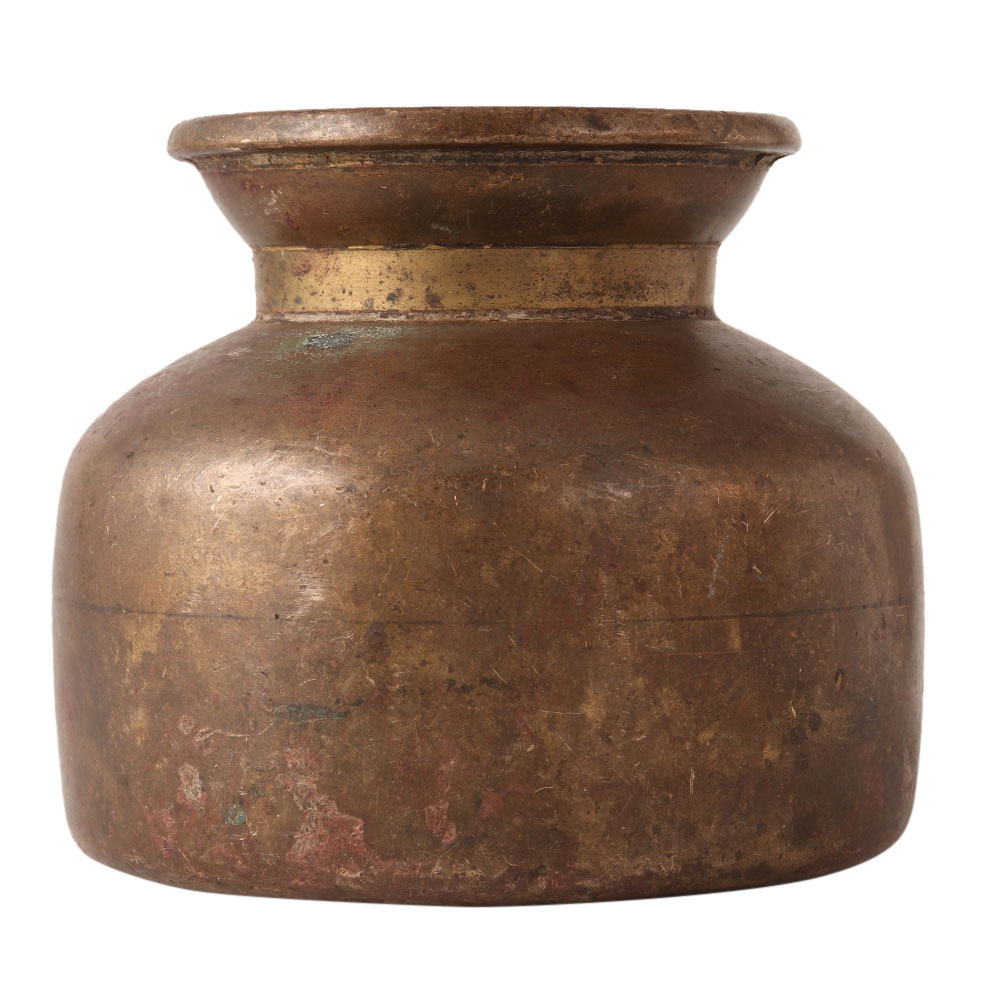 Used holy water pot made of brass. It has a flat bottom to keep on the surface. It is a perfect gift for your family and friends for Diwali, birthday or wedding celebration. A perfect item for the collection.