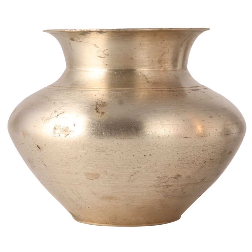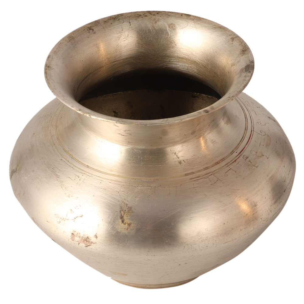 This ancient Kalash or water pot has a shiny appearance and is made of white metal alloy. It has a flat bottom so that it stands well on the surface. It can be used in Hindu Havan to keep sacred water or rice. It is believed that Havan increases the energy of the human body and makes it progressive. Decorate your hotel reception or restaurant with this beautiful shiny Kalash.