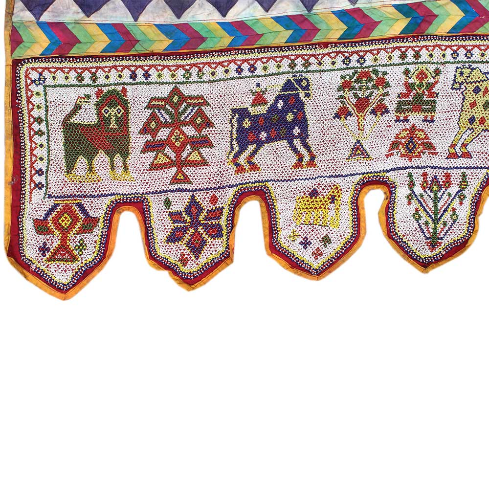 This toran is often used in Indian households during religious ceremonies and festivals. It is believed to bring good luck, positivity, and protection into the home. The animal motifs, which may feature elephants, lions, or peacocks, carry symbolic meanings of strength, grace, and prosperity. The beaded design adds a layer of sophistication and style, making it a perfect fit for both traditional and modern décor.