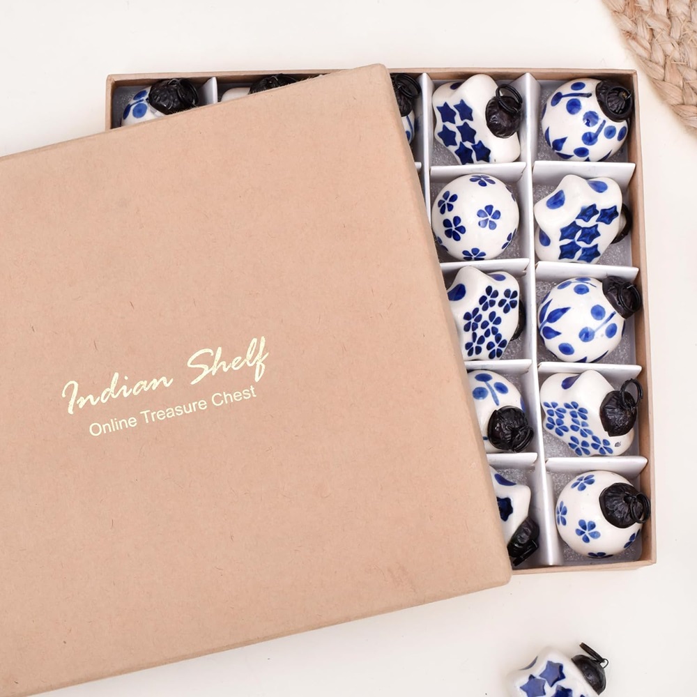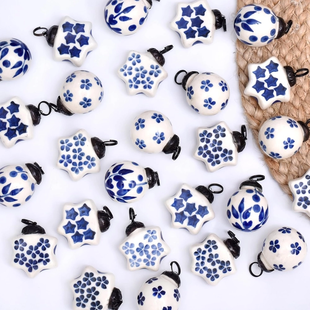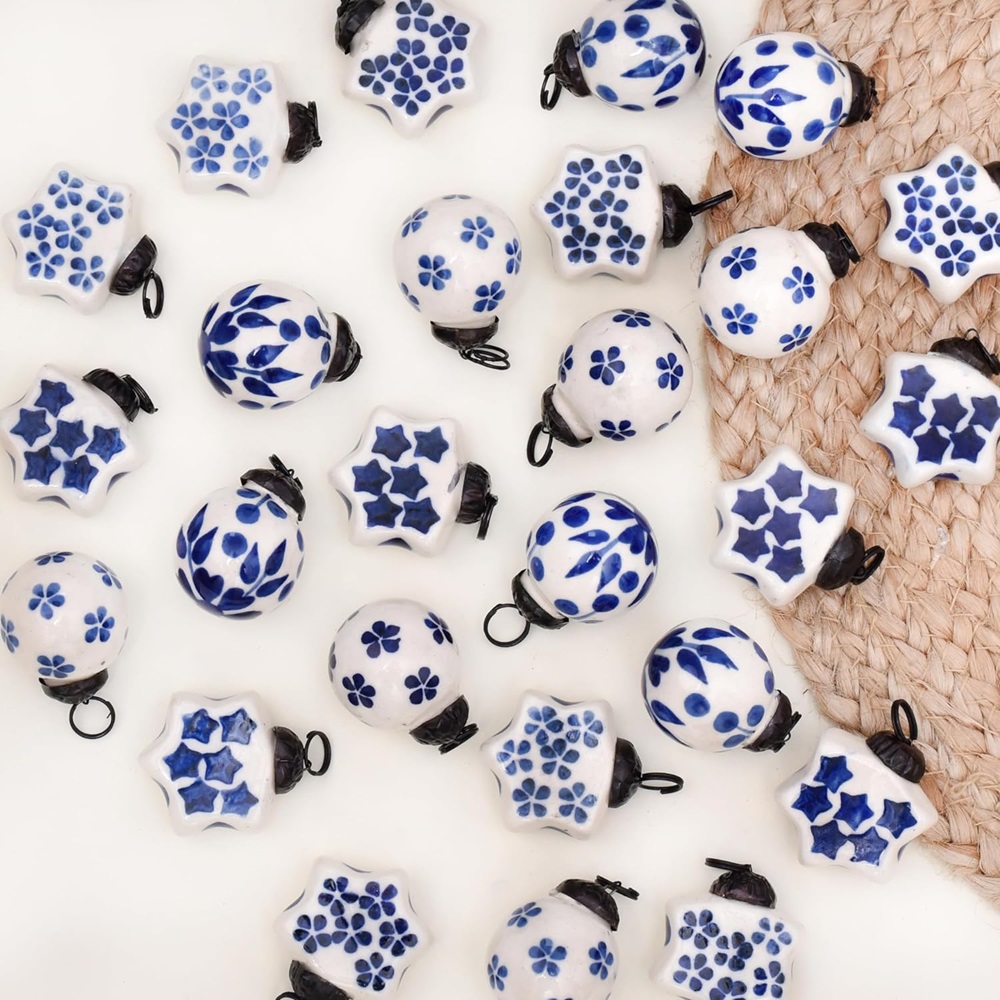 The subtle combination of blue and white, along with the smooth ceramic finish, creates an understated elegance that enhances the festive spirit. These ornaments add sophistication and charm without overwhelming your holiday decor.