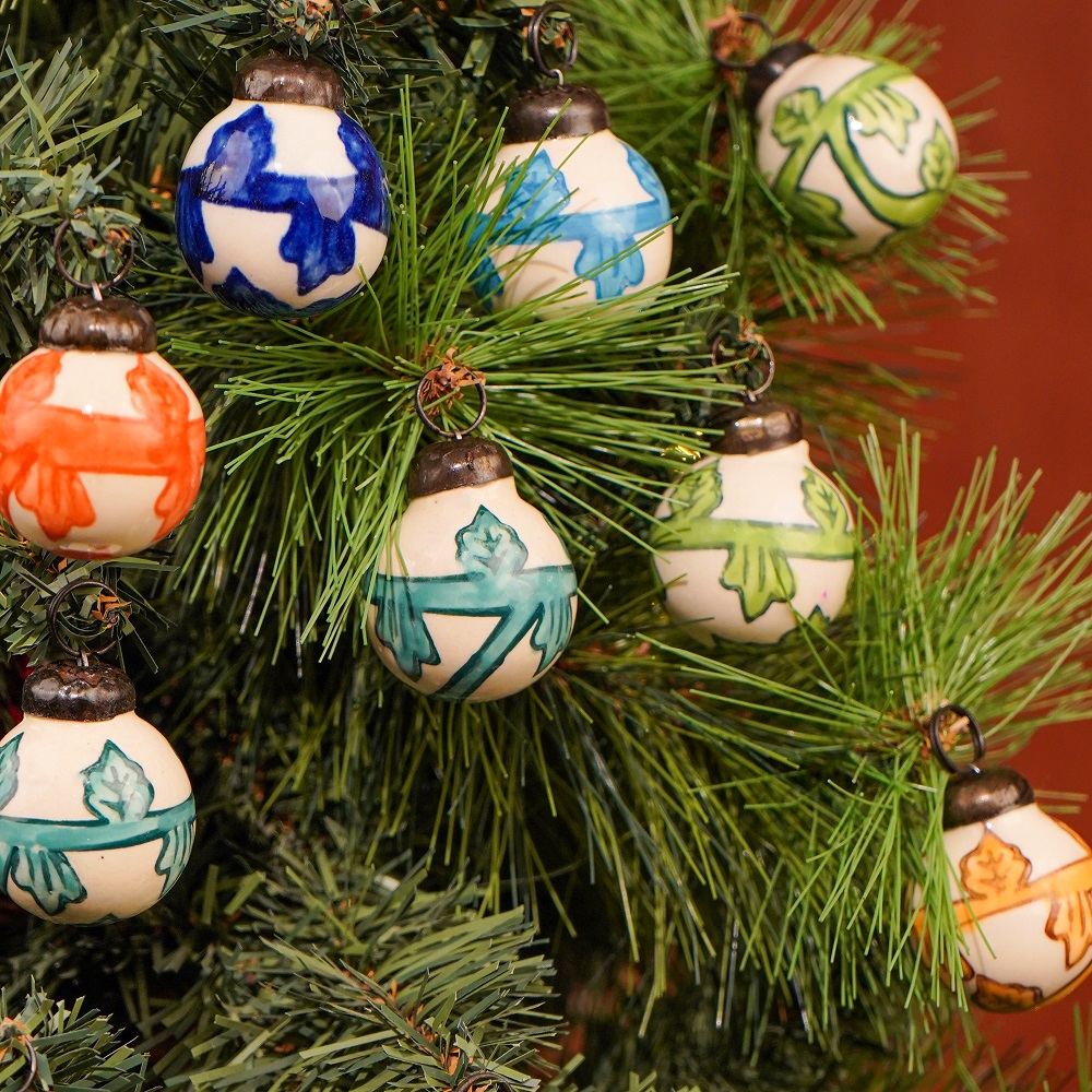 Each ornament is carefully handcrafted and painted by skilled artisans, ensuring a unique design for every piece. Made from durable ceramic, these ornaments are built to last and can be enjoyed for many holiday seasons to come.