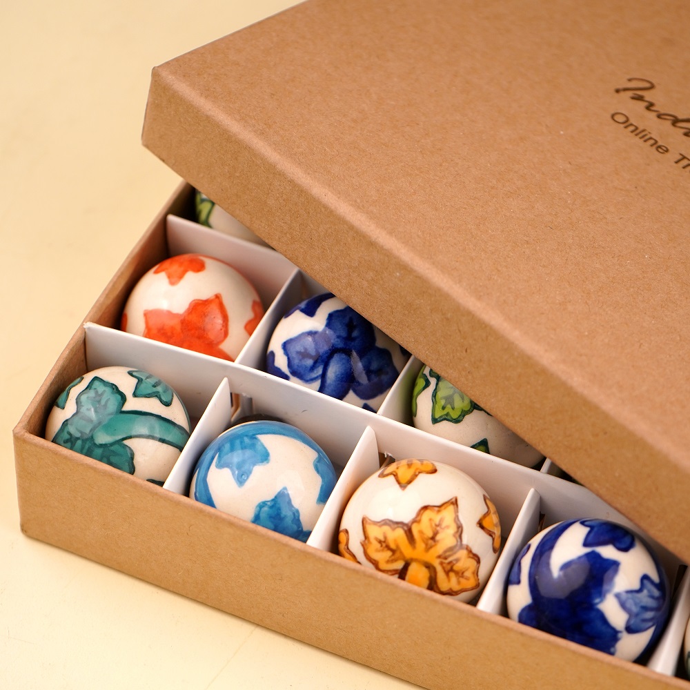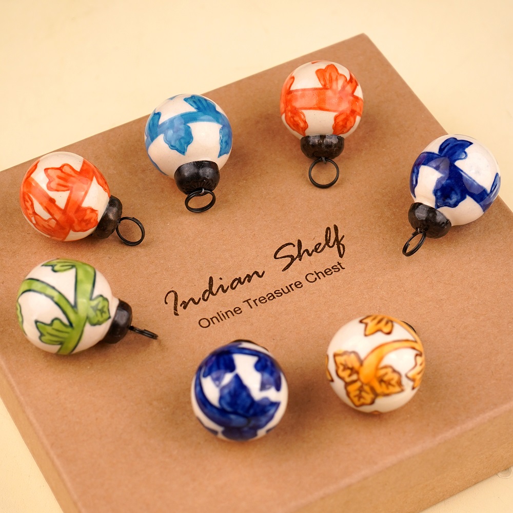 Each ornament in this set is made from high-quality ceramic and features lively multicolor patterns. Their round shape and bold hues ensure they stand out, creating an eye-catching display wherever they are hung. They’re ideal for adding a fun, festive vibe to your Christmas tree or holiday arrangements.