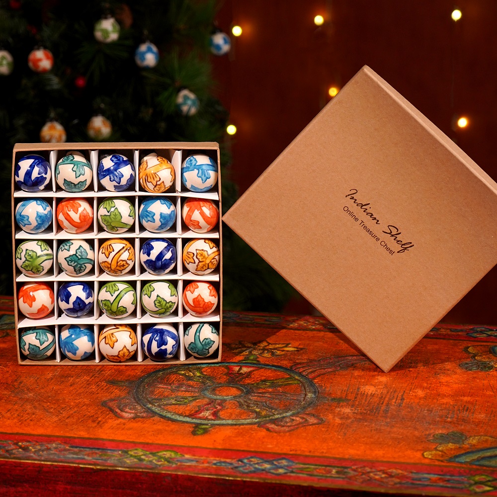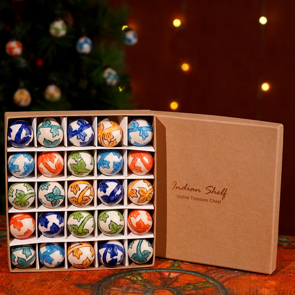 Infuse your holiday decorations with vibrant charm using this set of 25 Decorative Multicolor Round Tiny Ceramic Christmas Ornaments. They’re perfect for adding a splash of color to your Christmas tree, wreaths, or any festive setting, bringing a playful and cheerful touch to your seasonal décor.