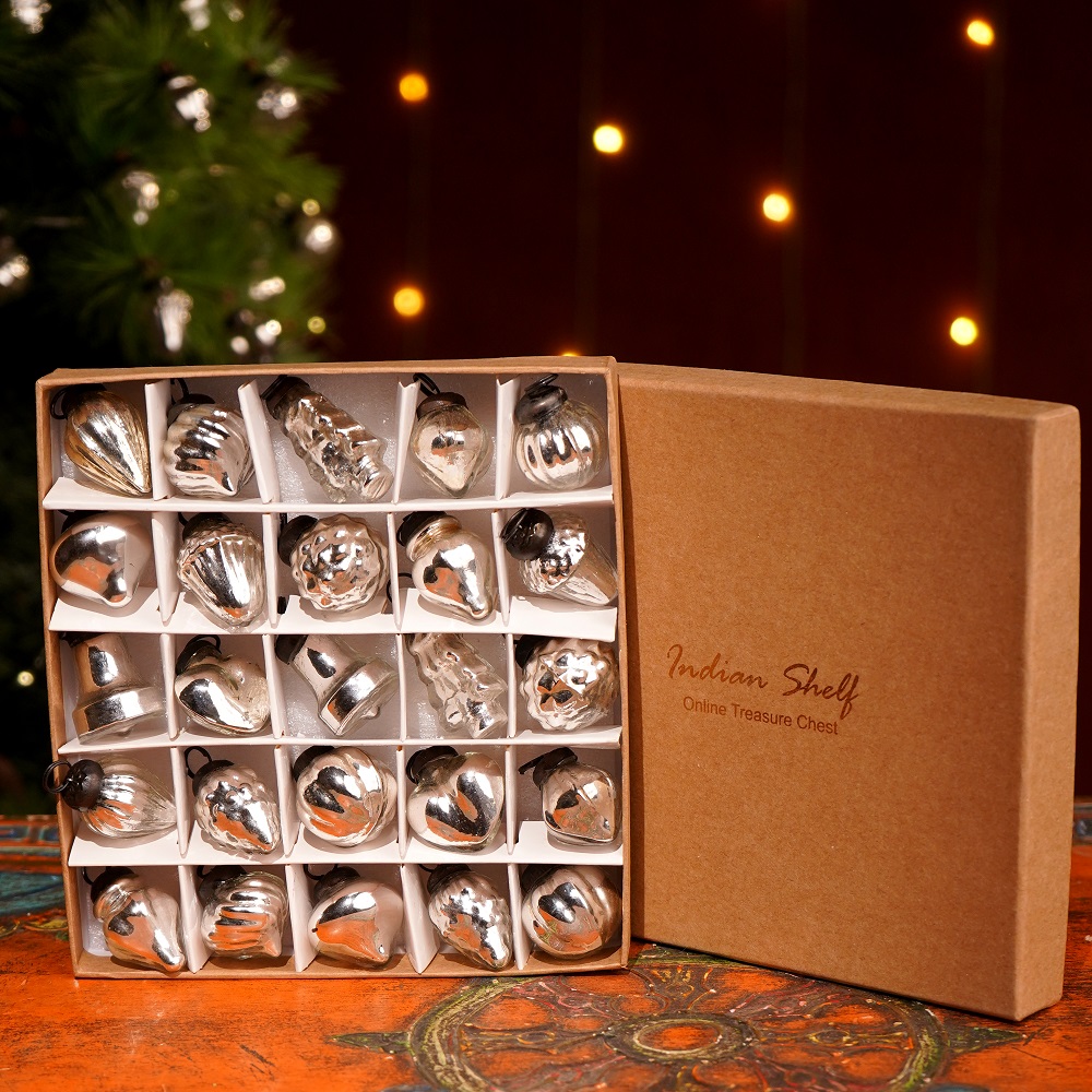 Bring your Christmas tree to life with these sparkling silver glass ornaments. Their gleaming finish and lightweight design make them easy to hang and distribute evenly across your tree, creating a dazzling, festive look that will impress your guests.