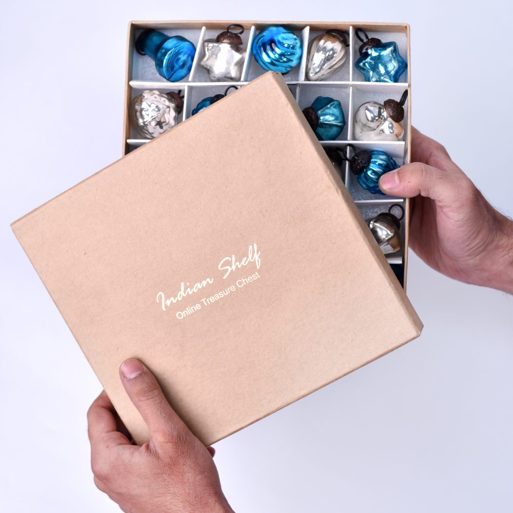 Turquoise and Silver Tiny Round Christmas Ornaments Which Used In Christmas Decoration like Christmas tree etc.