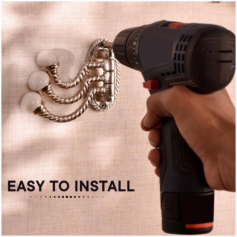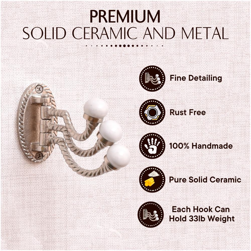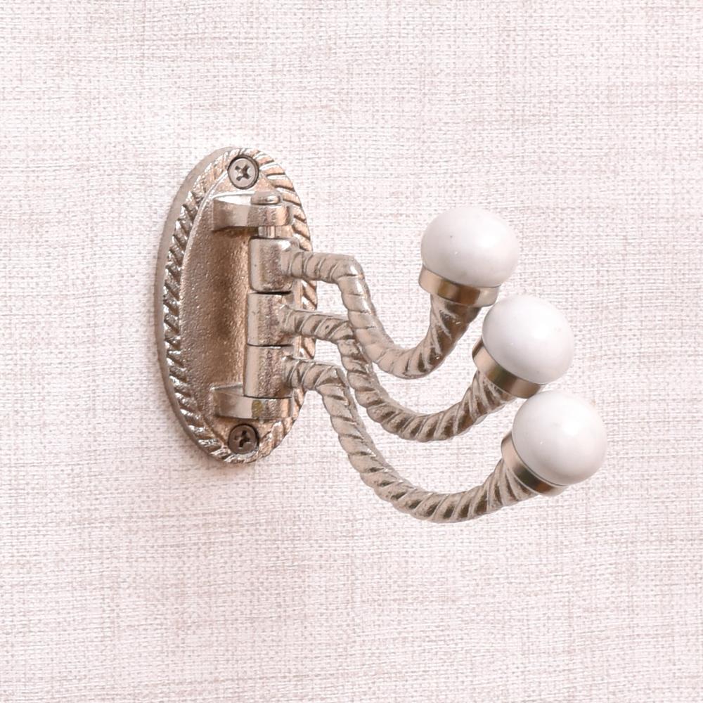 3 in 1 Silver Metal and Porcelain Wall Hook. Suitable for Your Kitchen, Cupboard, Rooms, Cabinets, Almirahs, Bathrooms, Doors Etc.