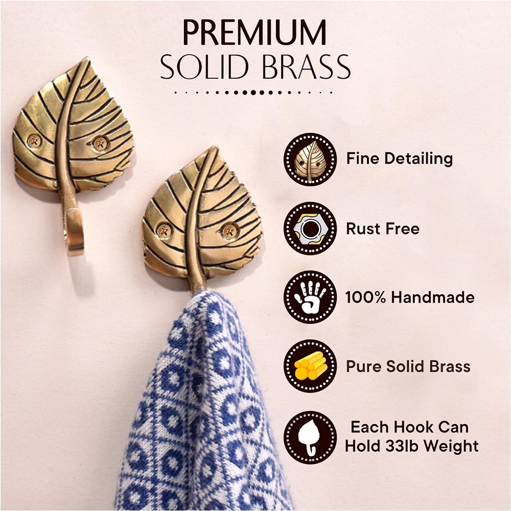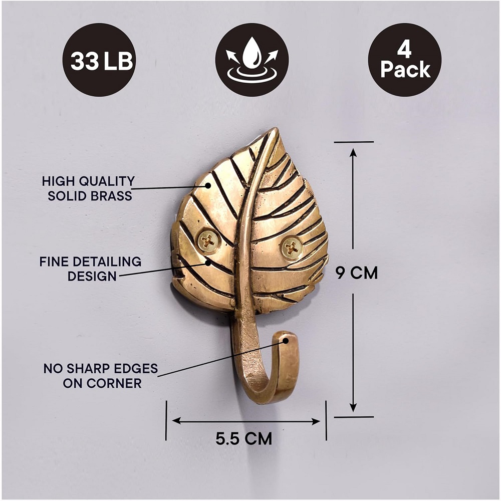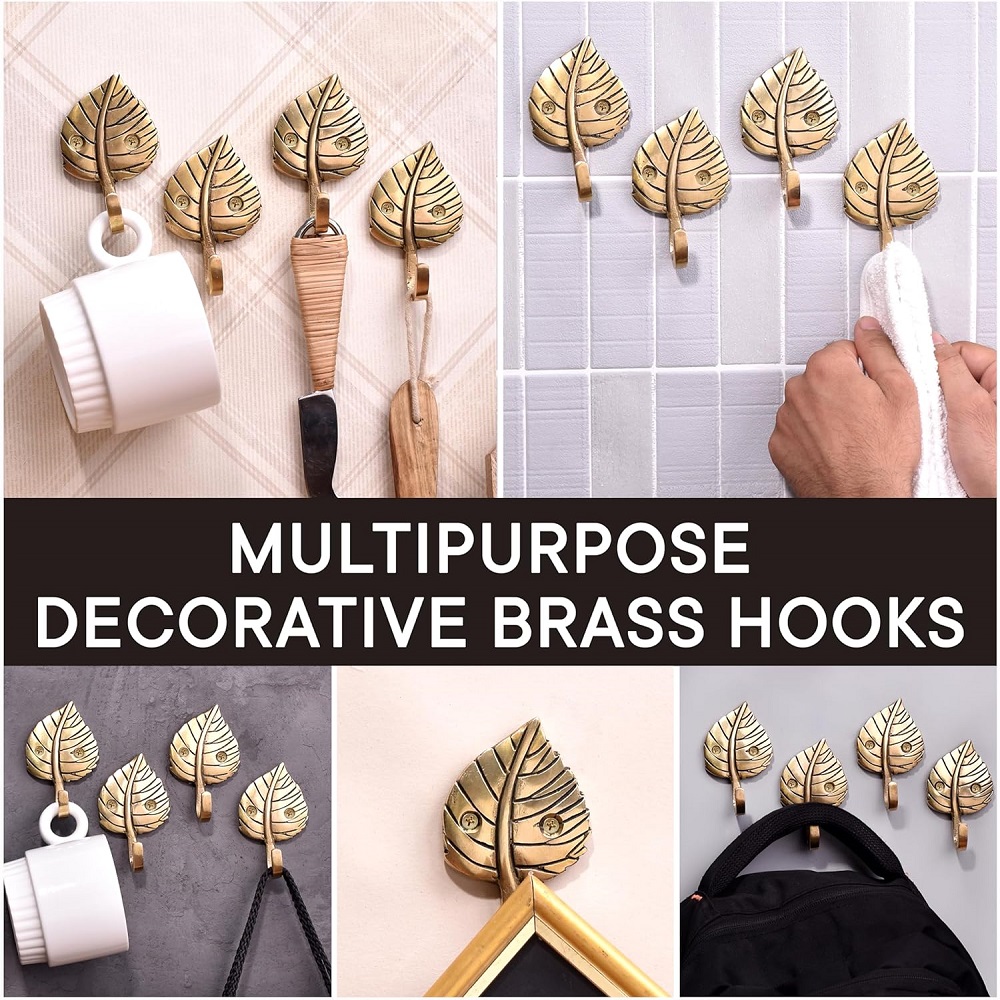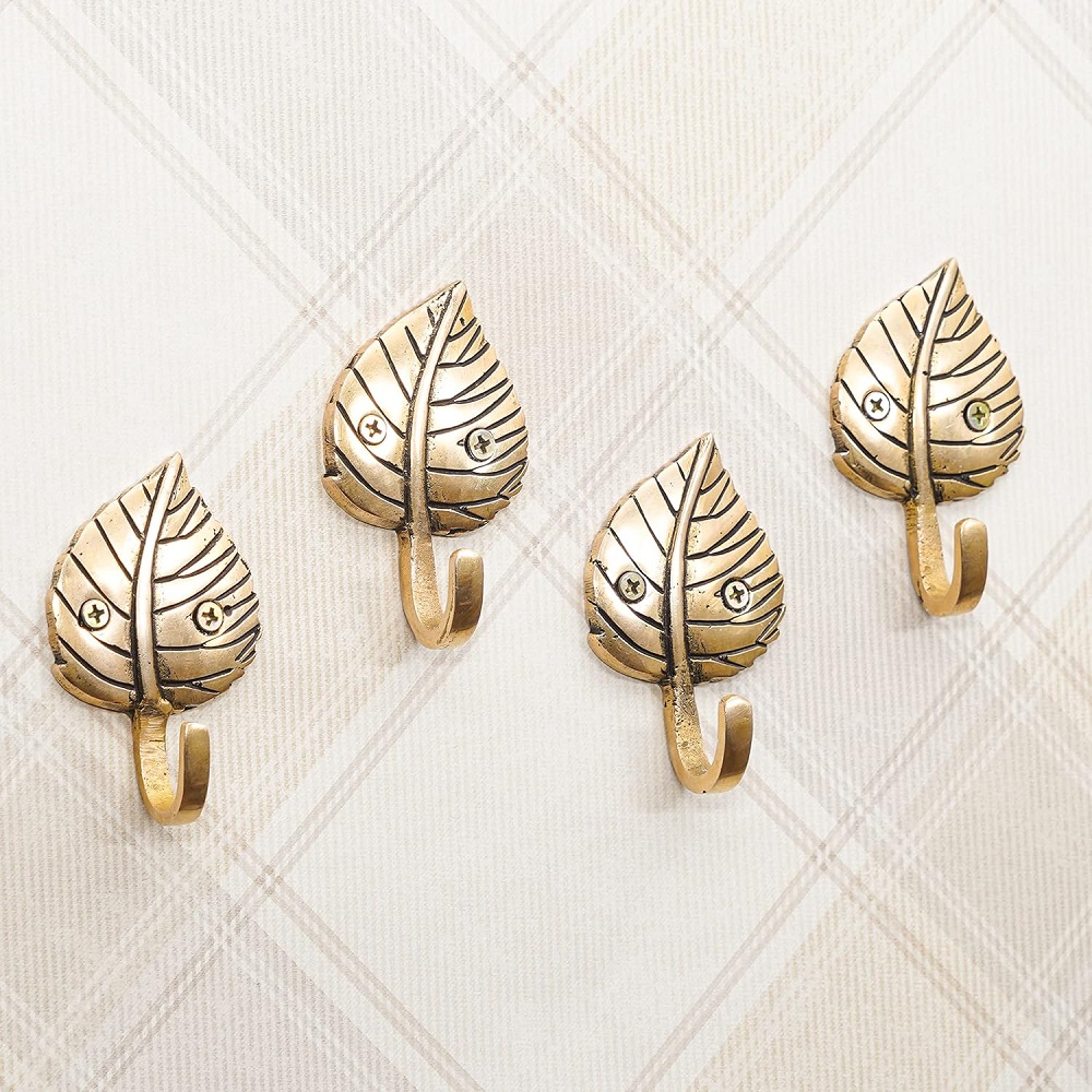 4 Pieces Brass Single Leaf Wall Hook For Home decoration
