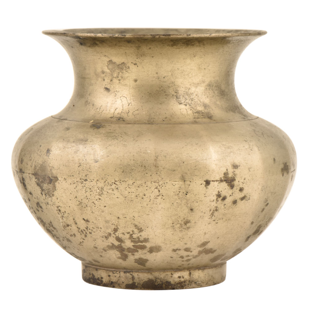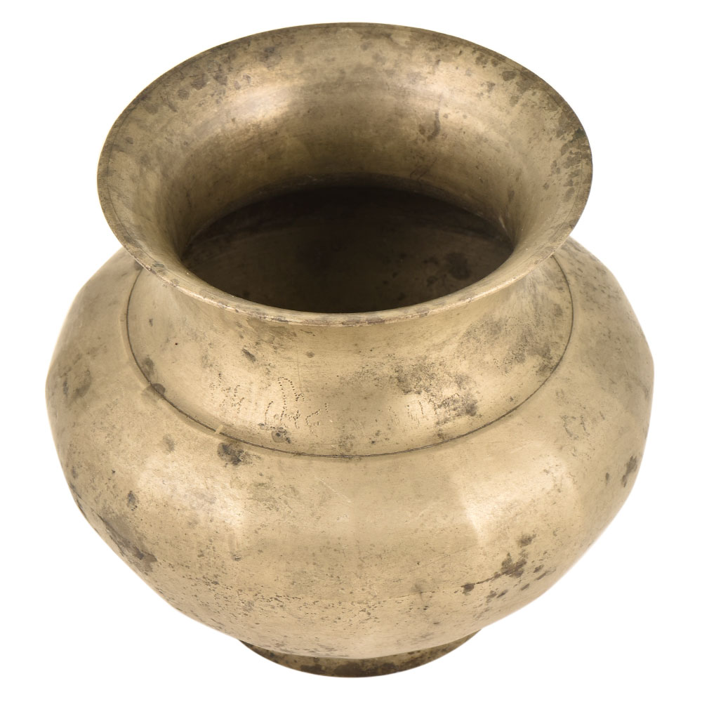Engraved Brass Water Pot (Lota) from North India is handmade by the local artisans and each pot has a distinct design no two pots are identical . The pot carries the distinct design of the time.This exquisite piece is a treat for collectors and makes for a wonderful decor accent with 7 December 1986 date engraved on the pot.