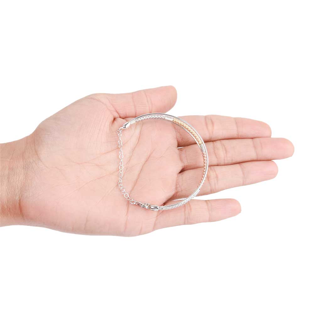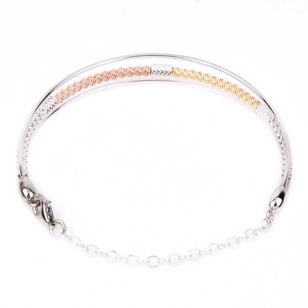 92.7 Sterling Silver And Gold Plated Braid adjustable Bracelet with silver pipes on either side. Suitable For workplace, Formal, Casual & Party Wear and joyous occasions. Team Up With robes, Saris, Indian Outfit Or Cocktail Evening Wear. Ideal friendly relationship Day, St Valentine's Day or present To Friend, Girlfriend, Daughter, Wife, Sister, Boss Or somebody Special.