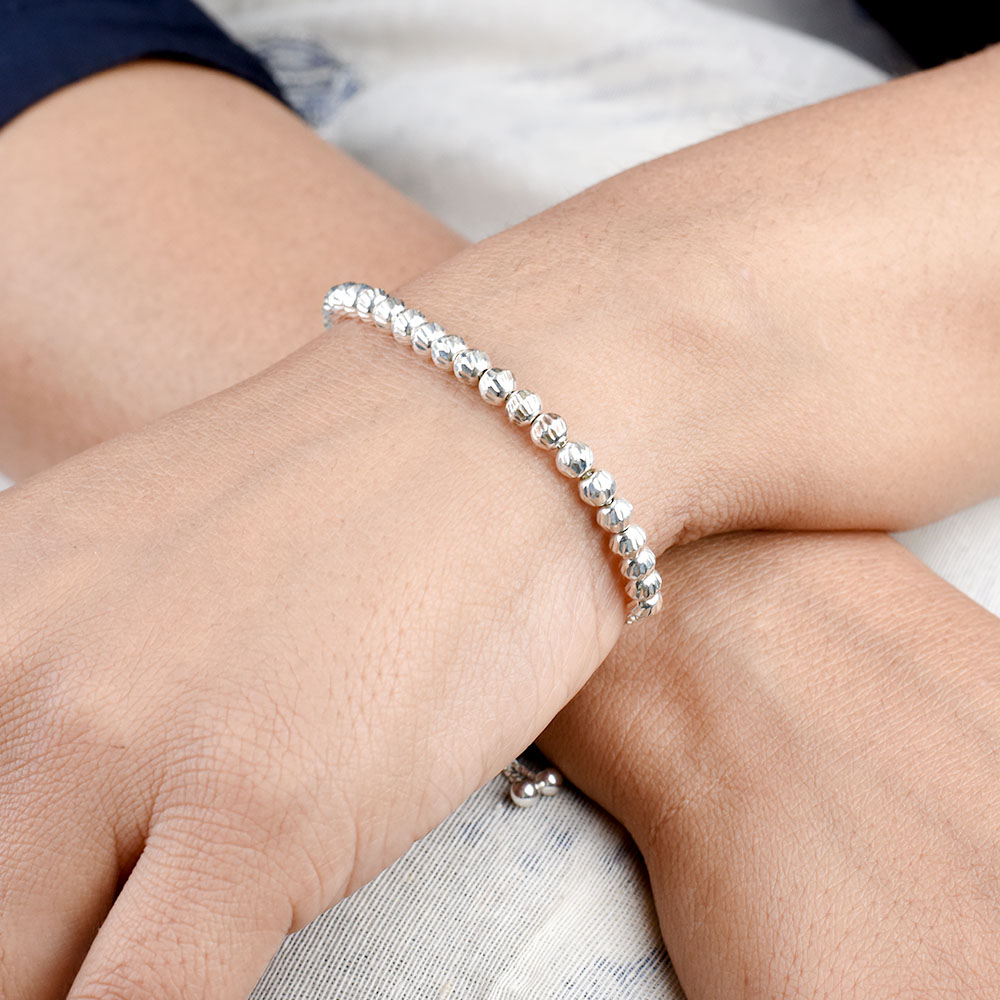 Handcrafted 92.5 Sterling Silver beaded bracelet that is adjustable with the help of a single bead at the end while the other two strings sealed with smaller beads . Perfect gift on valentine day, anniversary, birthday , graduation day and gift for your near and dear ones on important functions and occasions.