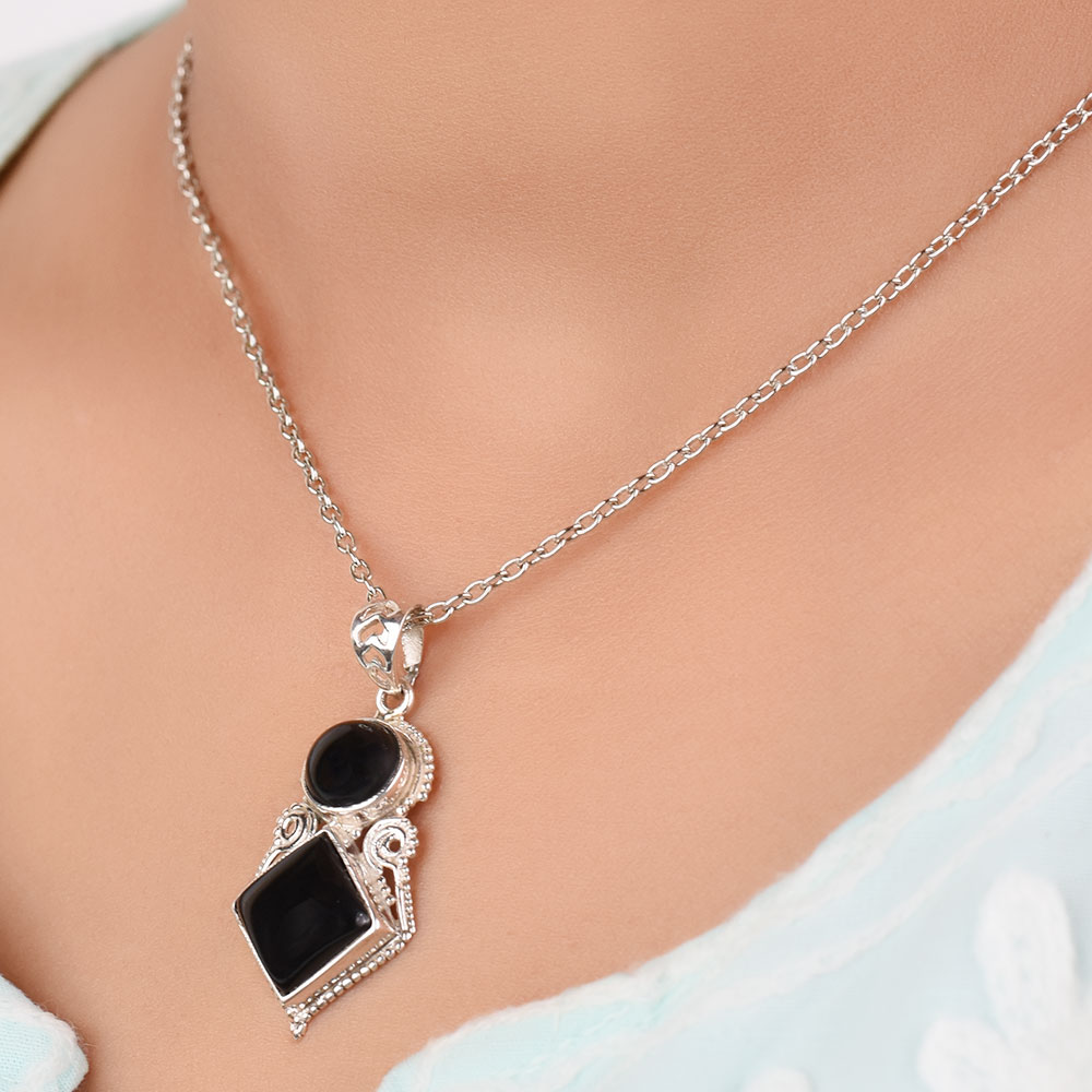 Dazzle everyone with our silver pendant chain for women made in 925 Sterling Silver and Semi-Precious Stone Black Onyx. Suitable for Any Season these pure silver pendant would make a great birthday gift, anniversary gift, mother's day gift, valentine's day gift, Christmas gift, wedding gift.