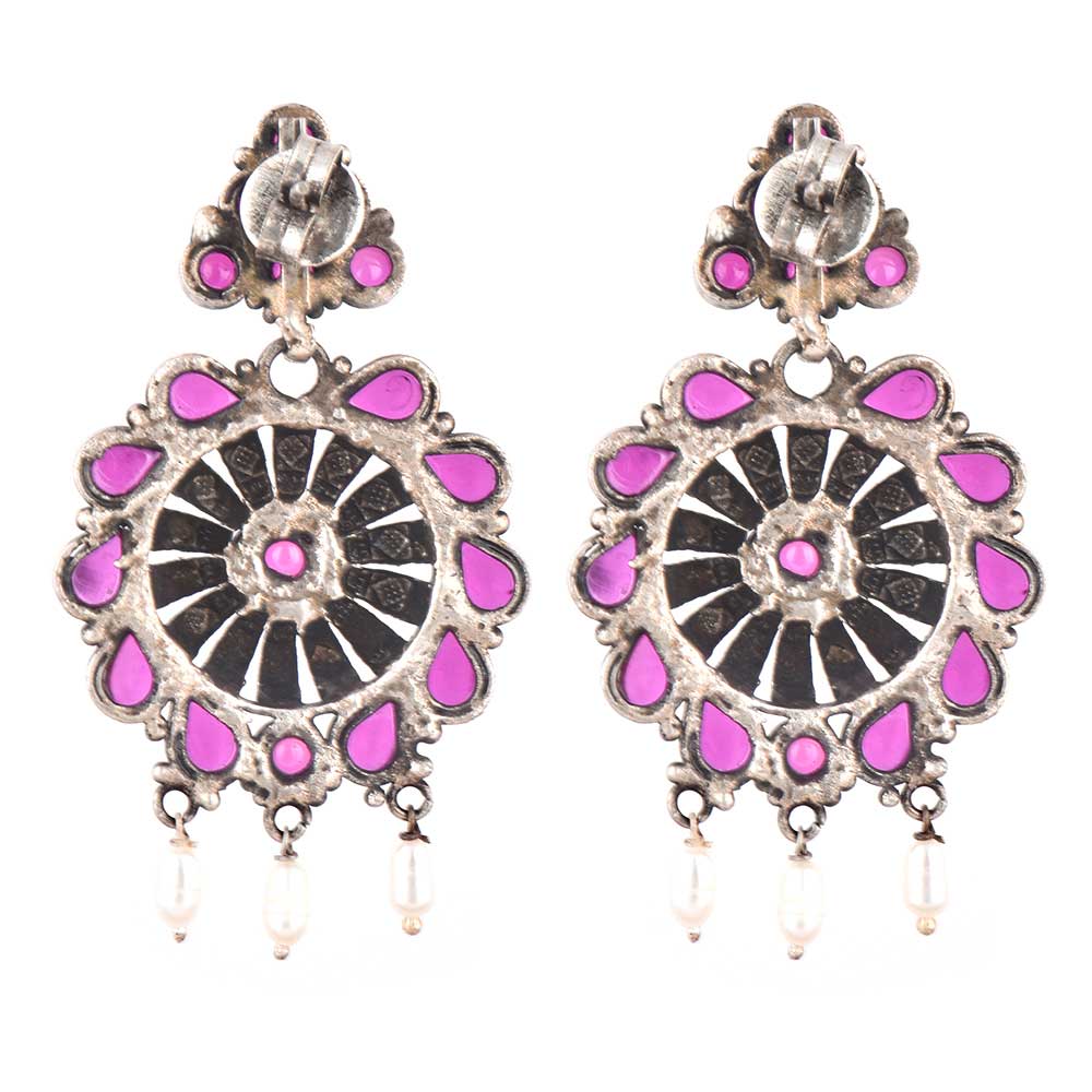 Match your Pink traditional wear with this handmade 92.5 Sterling Silver dangler earrings on the stud and also in a circular pattern of the dangler . Wear it for your Christmas party , diwali and other religious party, birthday party , bridal shower etc. Gift it to your near and dear ones and someone special.