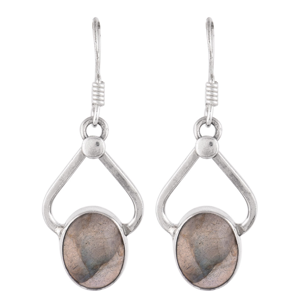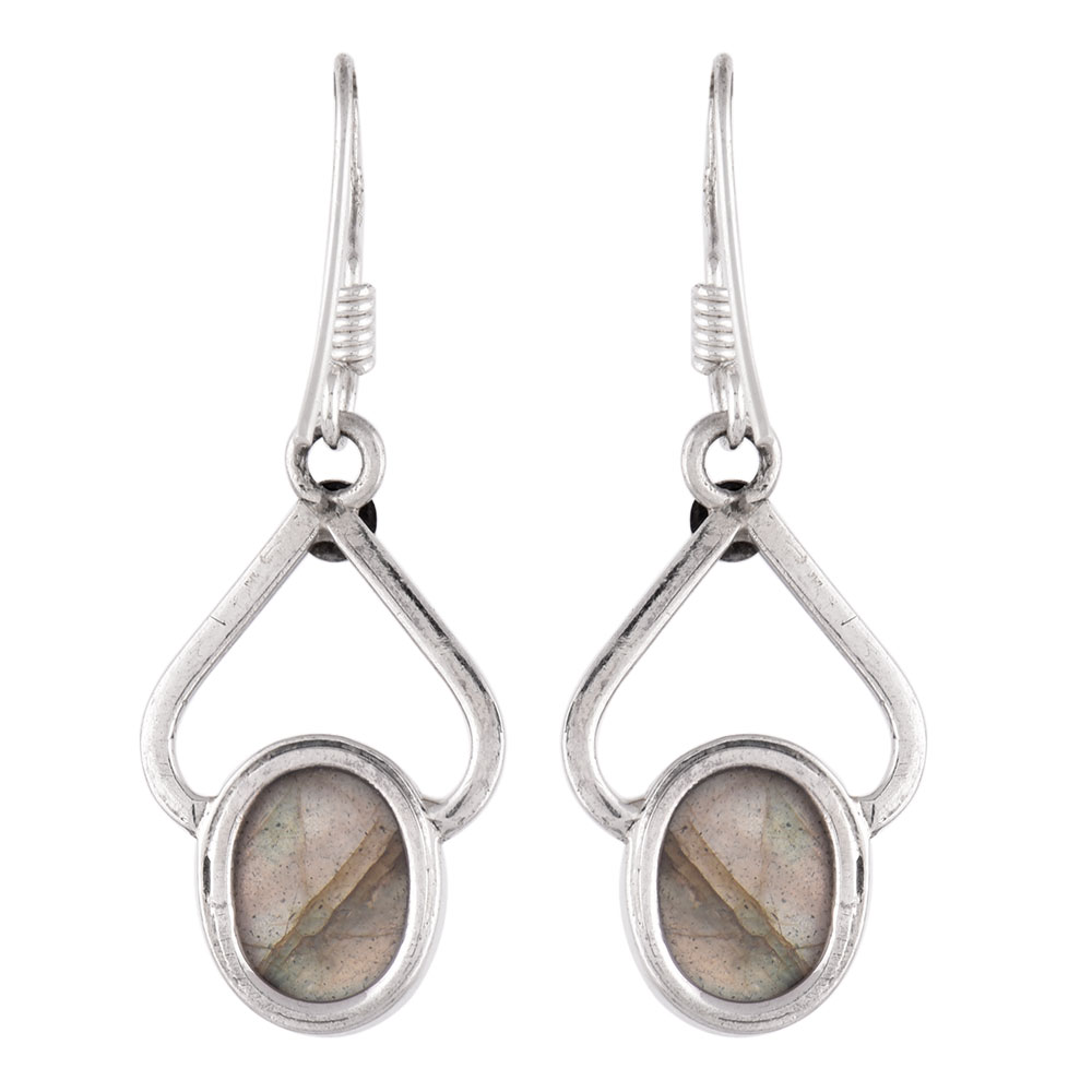 A very simple looking 92.5 Sterling Silver earrings with a long oval shaped agate stone in bezel setting with scroll design on top of the stone attached to the hook with rope design. Wear it to office and college daily.
