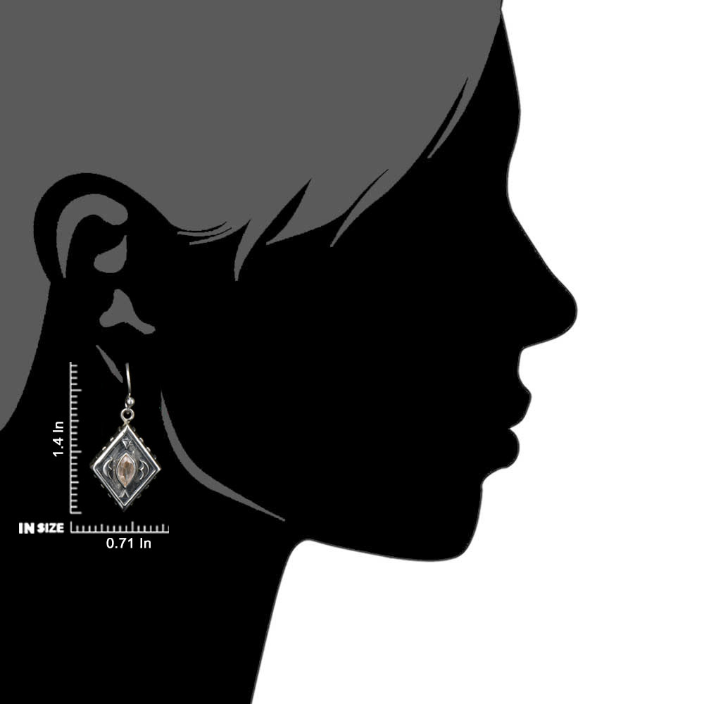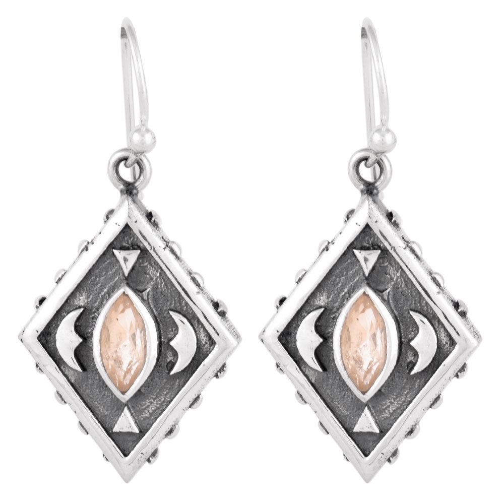 92.5 Sterling Silver Earrings Citrine Engraved Kite Earrings