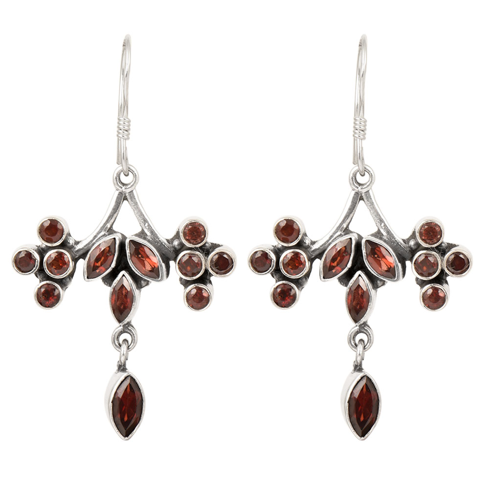 These handmade 92.5 Sterling Silver Earring looks extremely classy and elegant and is ideal for traditional as well as modern attire with red garnet stones in hanging leaves design. A perfect gift for your sister, mother and girlfriend. On occasions like weddings, Valentine day and birthdays etc.