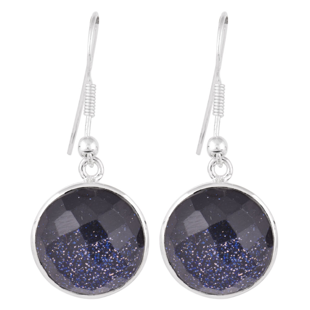 Handmade 92.5 Sterling Silver Fancy and everyday wear with single round faceted blue Goldstone for girls and women the eternal classical design these vintage earrings will complement any occasion ethnic wear/ daily / college / party wear.