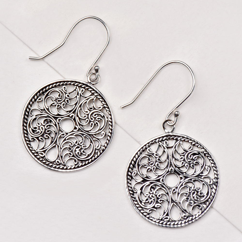 With ornate filigree detail, these 92.5 silver floral round drop earrings is an accessory that you will want to wear every day. Pair them with any outfit to add a feminine touch. These earrings are also ideal for gifting.