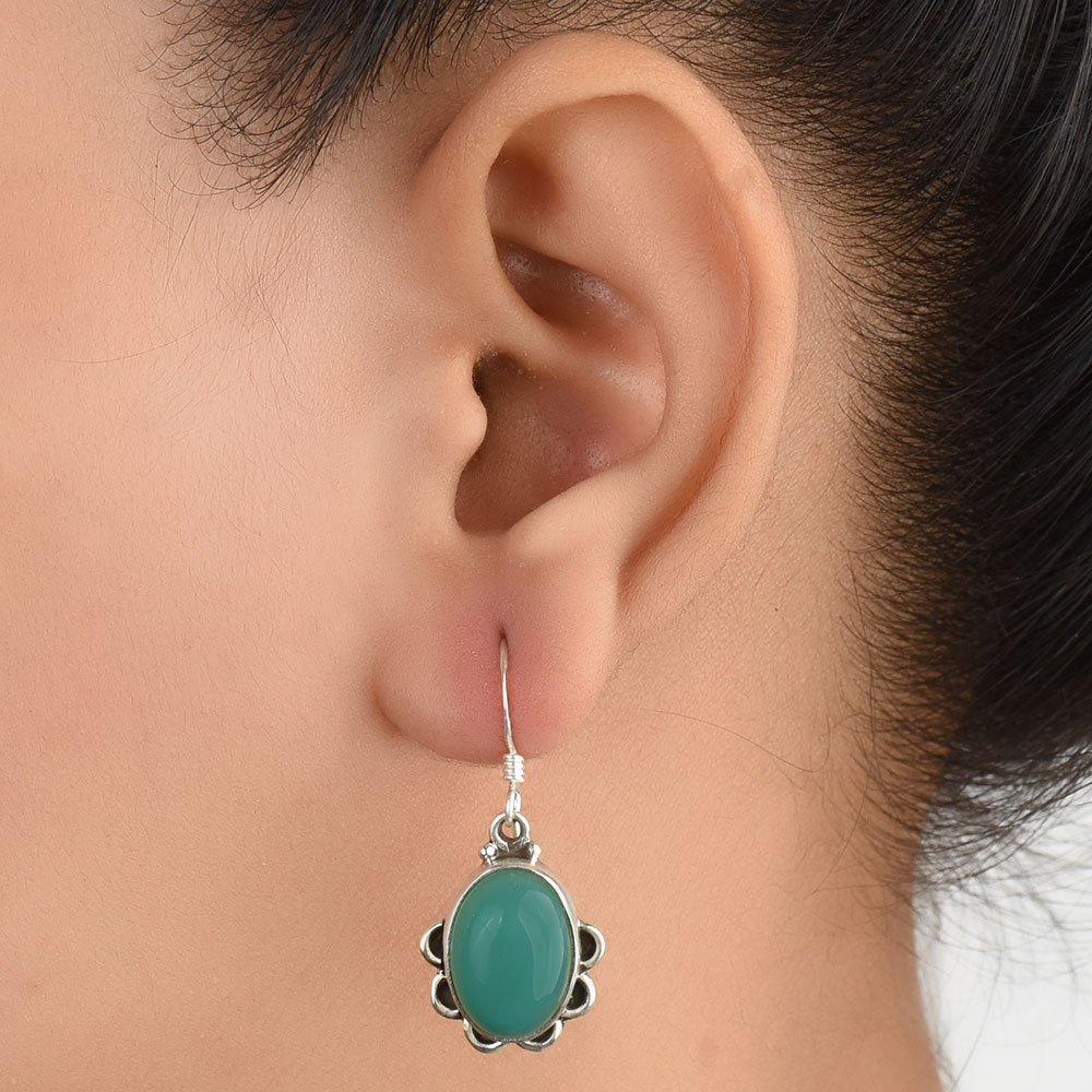 92.5 Sterling silver earrings Floral Green Agate hook earrings are fashioned with utmost precision, this gorgeous pair of earrings will spruce up your style in a jiffy. Simple design that goes with any outfit to add a natural, but contemporary look.
