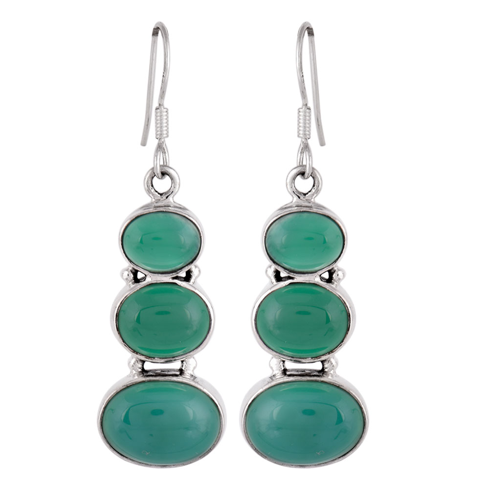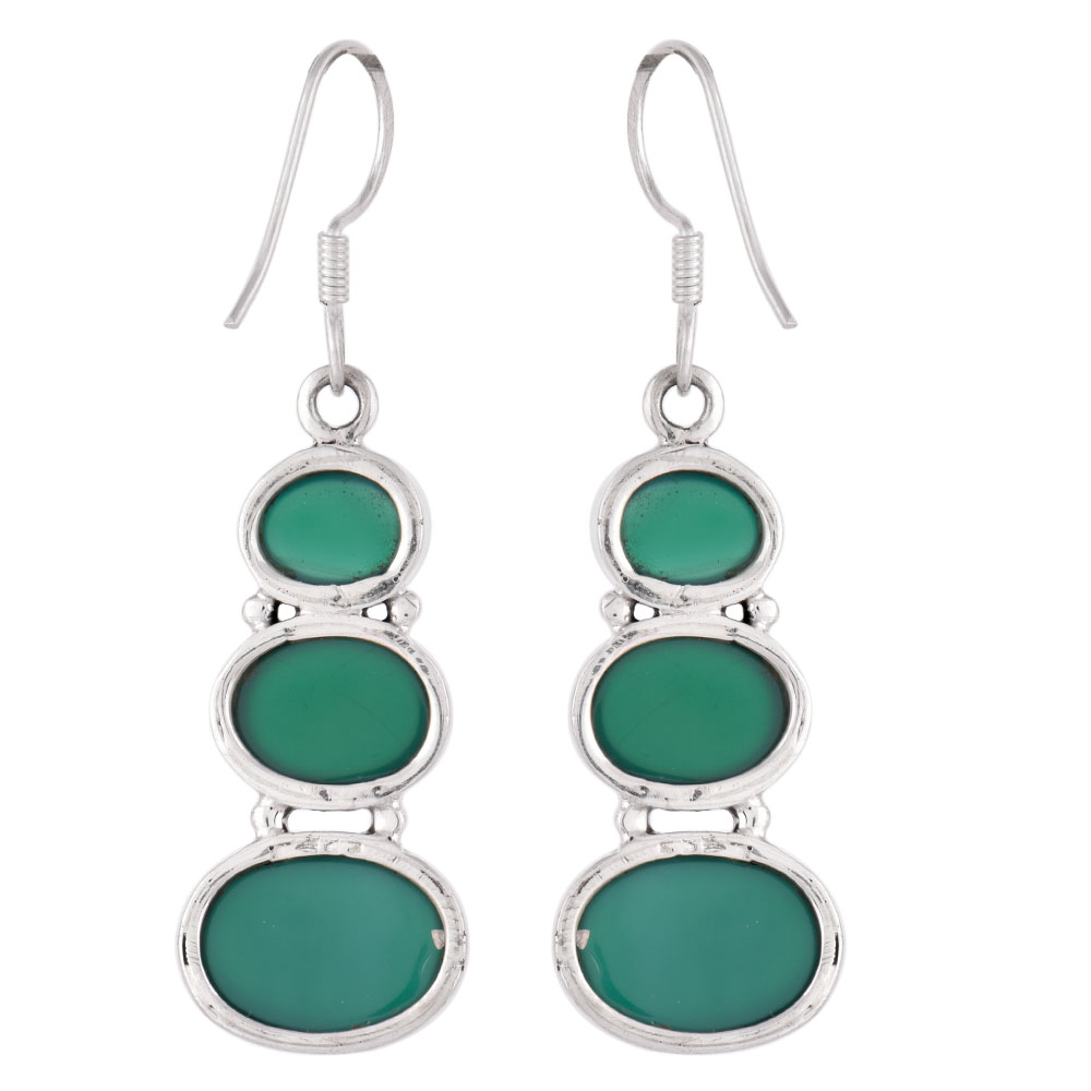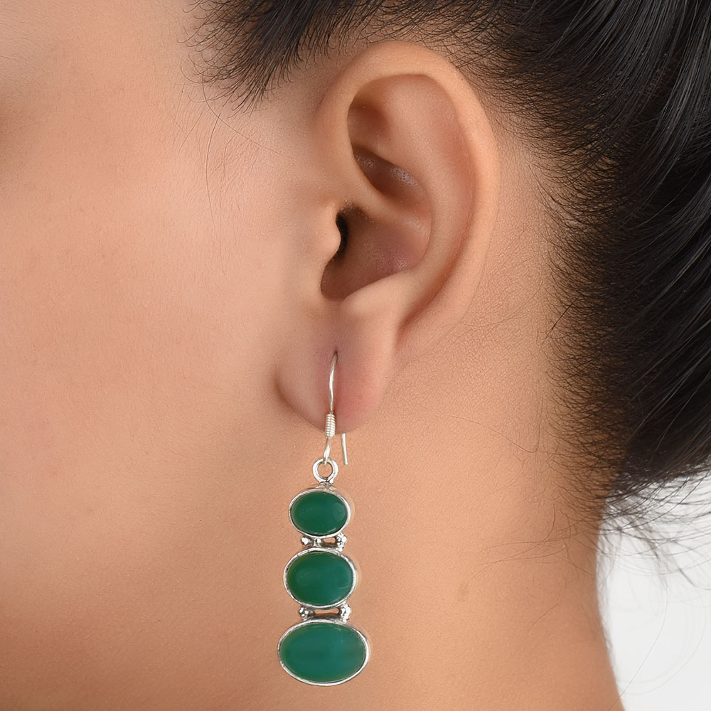 92.5 Sterling Silver Earrings Green Onyx Handset in sterling Silver Bezeles