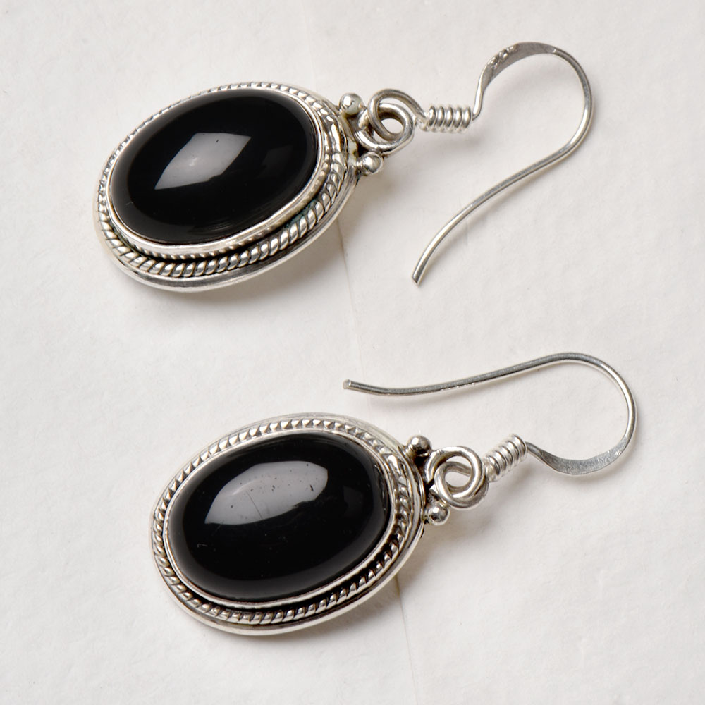 Simple Black Onyx Oval Cabochon bezel set earrings 92.5 Sterling Silver Earrings have a thin rope design all around the stone . Simple handmade Silver earring are ideal daily wear , office wear and college wear also suitable for small birthdays and functions.