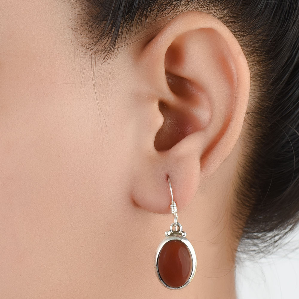 Liven up your bold hues with red fire Sterling silver cabochon carnelian Celtic drop earrings to make it an everyday style statement. Eternal classical design earrings will complement any occasion ethnic wear/ daily / college / party wear.