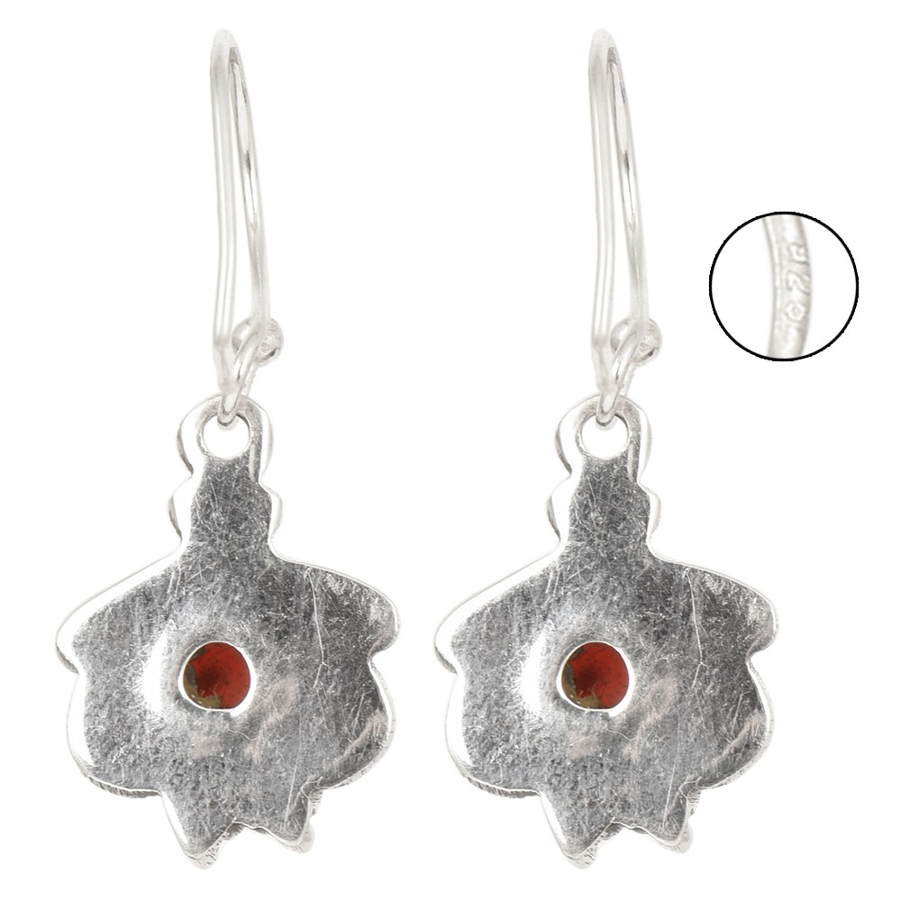 These earrings are handmade with red Jasper on 92.5 sterling silver with a hook and can be worn on birthdays, marriages, engagements or any special occasions to give it an Indian or traditional look.