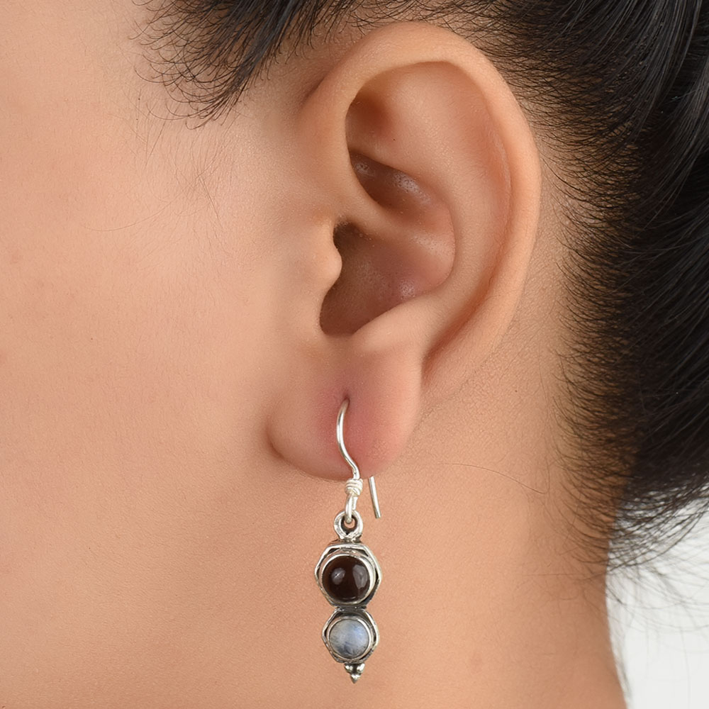 Handmade to perfection this simple just highly creative 92.5 Sterling Silver Earrings has a round faceted Topaz in the centre of the disc with four sterling silver balls soldered on the disk. Nice Daily wear earrings.