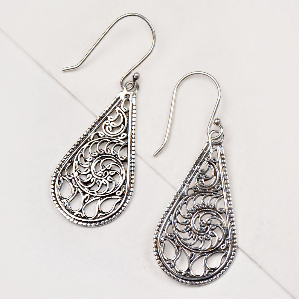 Bring your style to a whole new level with this 92.5 sterling silver earrings and pair it with any outfit be it traditional or modern to suit any occasion or function, birthday, wedding, or personal milestone with this sterling silver earring with fan shaped design , hanging silver beads and peacock stud on top.