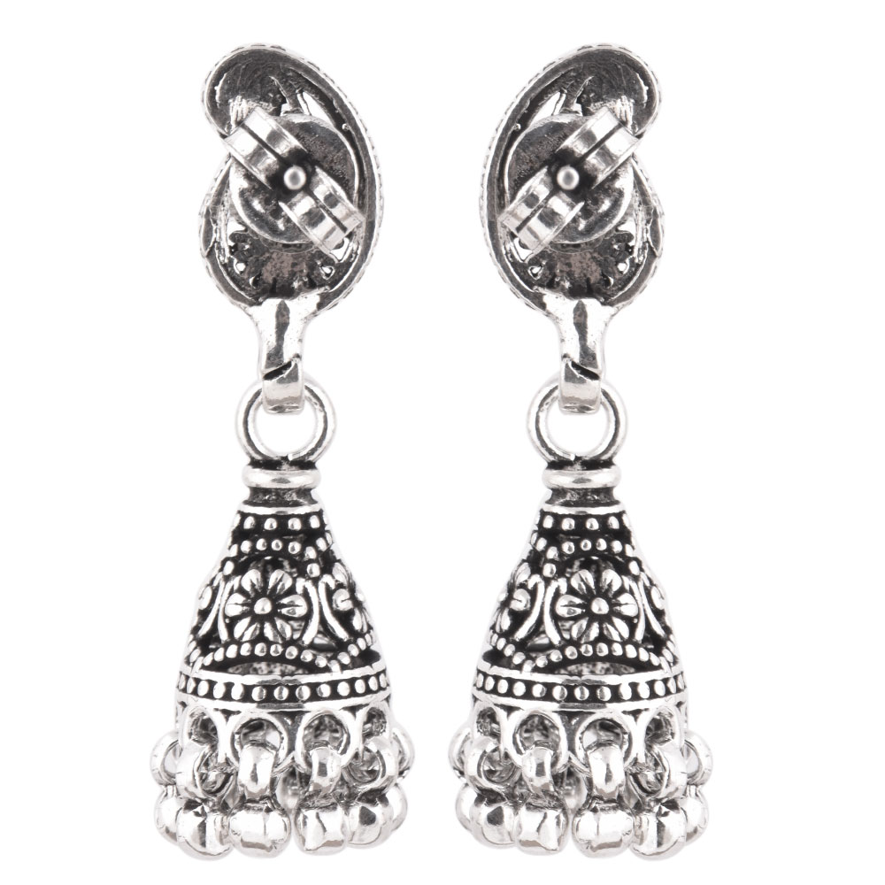 These 92.5 Sterling silver jhomkies can be worn at all auspicious function wedding, engagements or during the festival time. It can also be worn on regular basis. It has a lovely engraved Parsely top and embellished with metallic beads. An ideal present for your mother, sister or wife.