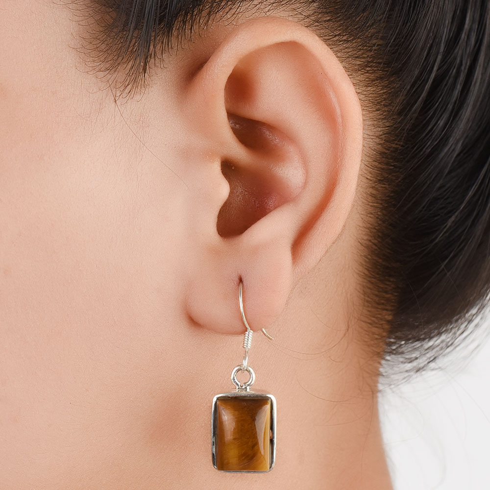 Jazz up your look with these hand crafted square Tiger Eye Drop earrings. Crafted in an intricate design frame of sterling silver, the pair boasts captivating charm. These earrings will bring a feminine appeal to your personality with a taste of an exquisite appeal.