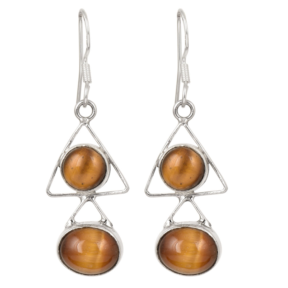 Handmade 92.5 Sterling Silver Fancy drop dangle earrings and everyday wear with two tiger eye stones for Girls and Women the eternal classical design these vintage earrings will complement any occasion ethnic wear/ daily / college / party wear.