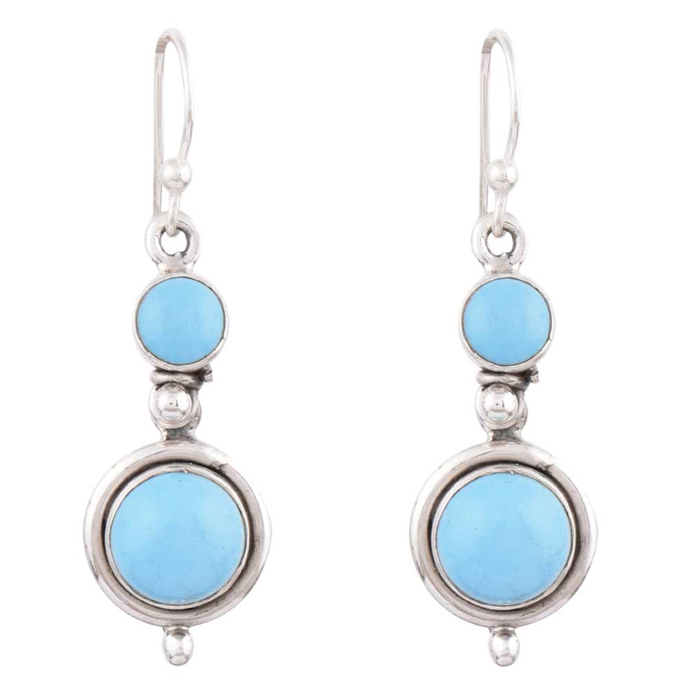 Jazz up your look with these hand crafted round turquoise Danglers Drop earrings. Crafted in an intricate design frame of sterling silver, the pair boasts captivating charm. These earrings will bring a feminine appeal to your personality with a taste of an exquisite appeal.