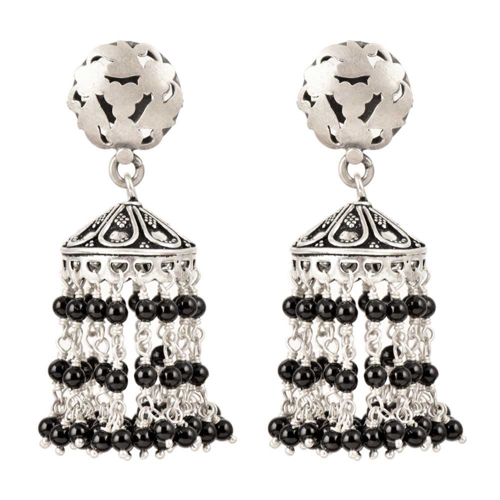 Handmade Tassel Jhumkas is 92.5 sterling silver earrings with white and black beads is the eternal classical design these vintage earrings will complement any occasion ethnic wear/ daily / college / party wear.