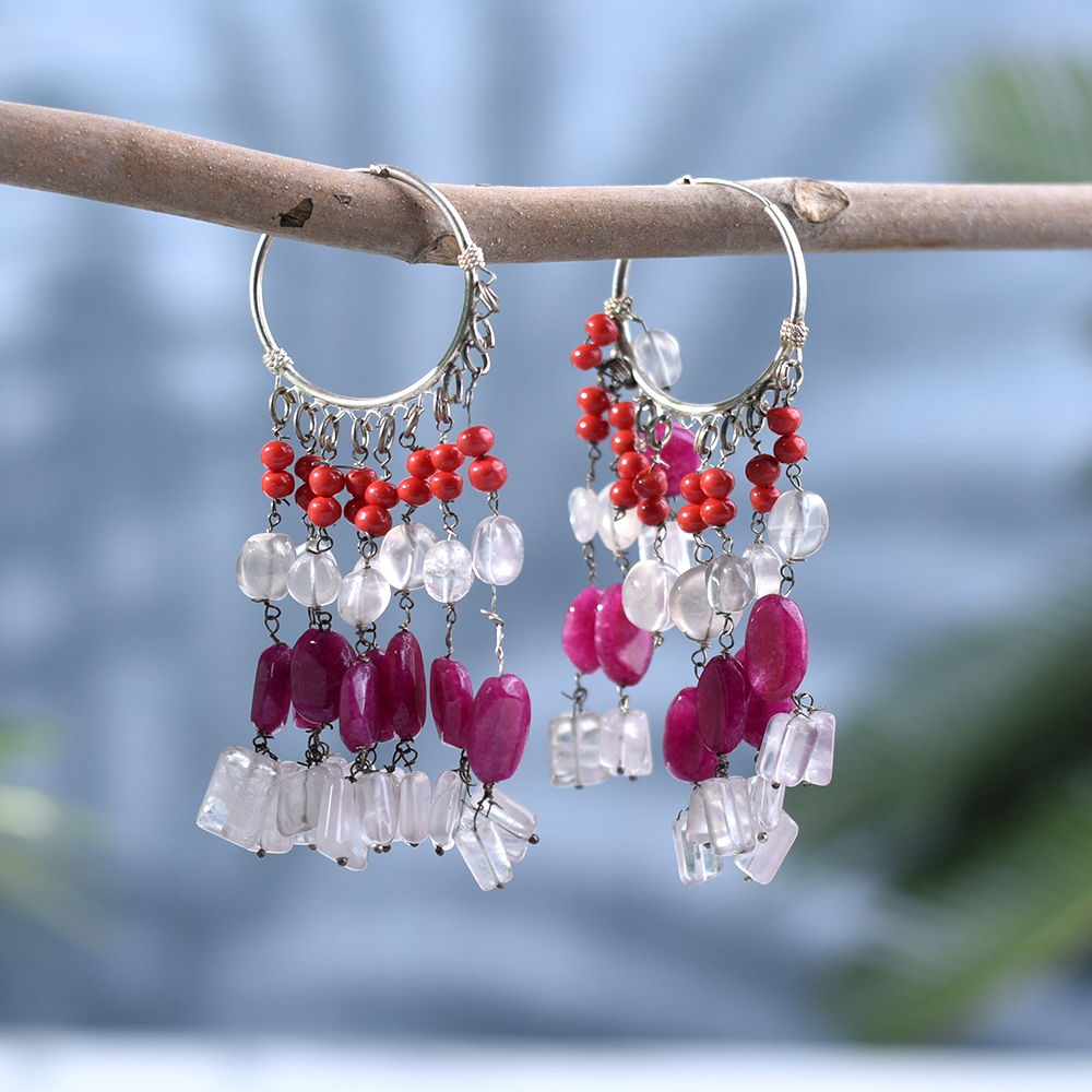 92.5 Sterling silver multi-bead dangle earrings are a distinctive and fashionable item of jewelry that combines a selection of beads with the strength and radiance of sterling silver. A dangle or drop design hangs from a silver post or hook on the earrings. Because the beads can be made from a wide range of materials, including glass, stone, wood, or metal, a wide variety of styles and colors are possible. The earrings are made of sterling silver, which is 92.5% pure silver. Because it is strong, hypoallergenic, and has a shiny, appealing silver color, this kind of silver is a preferred option for jewelry. These earrings will undoubtedly add a touch of class and style to any outfit, whether you're dressing up or down.