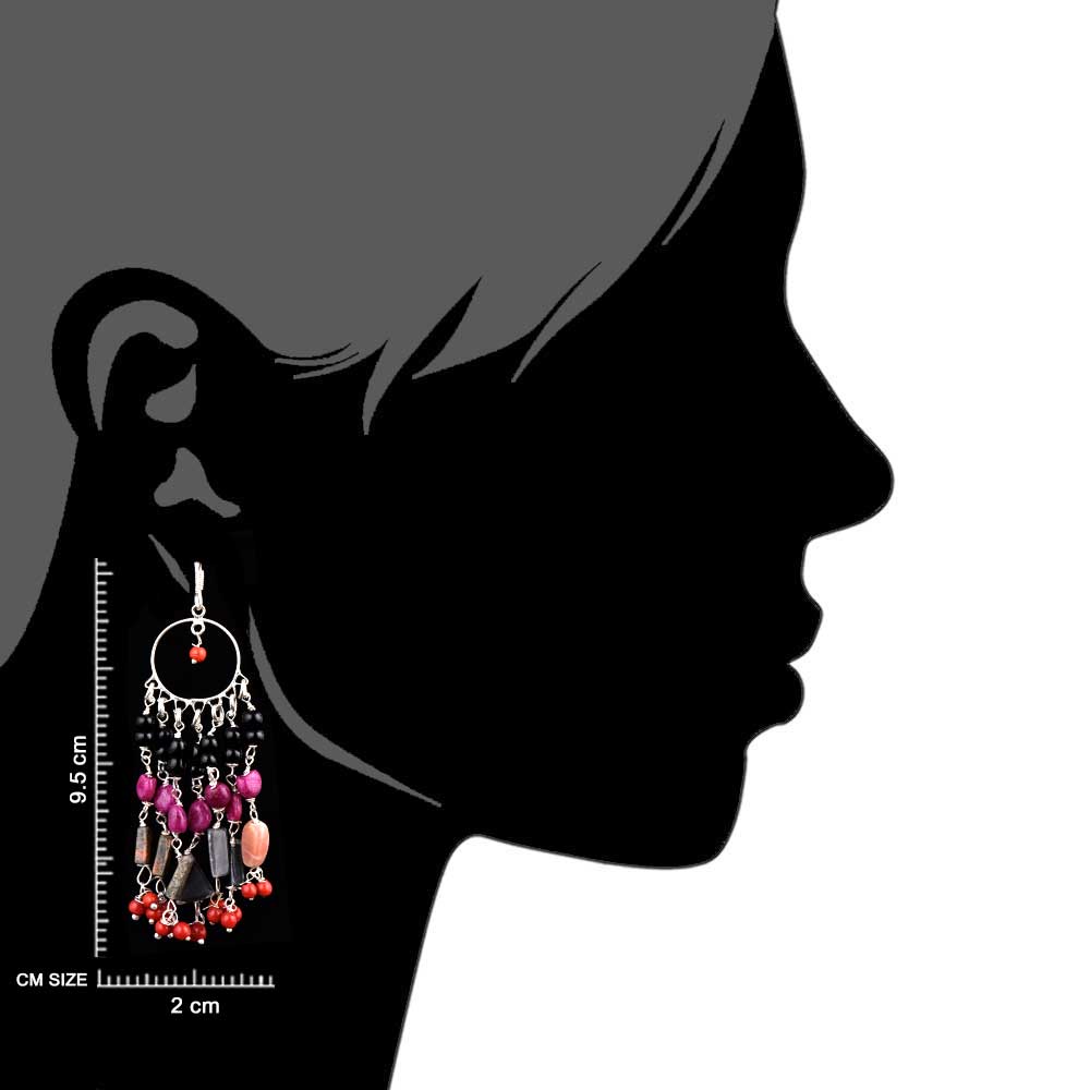 92.5 Sterling Silver Multi Colored Beads Bali Hoop Chandelier Earrings Fancy Party Wear Earrings for Girls & Women Ideal gift on Party,Birthday,christmas Wedding, Ceremony, Pumpkin etc for your friends and family.