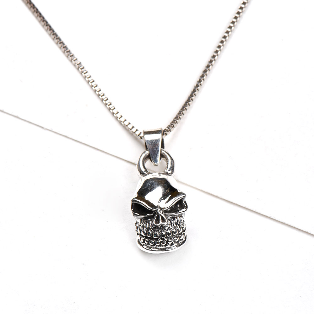 Handmade 92.5 Sterling silver pendant in angry human skull face with eyes, nasal cavity and teeth clearly visible. This pendant is an ideal gift on Halloween , birthday party , your friends and relatives who love some thrill in life .It is an all time favorite with youngsters and teenagers and kids too.