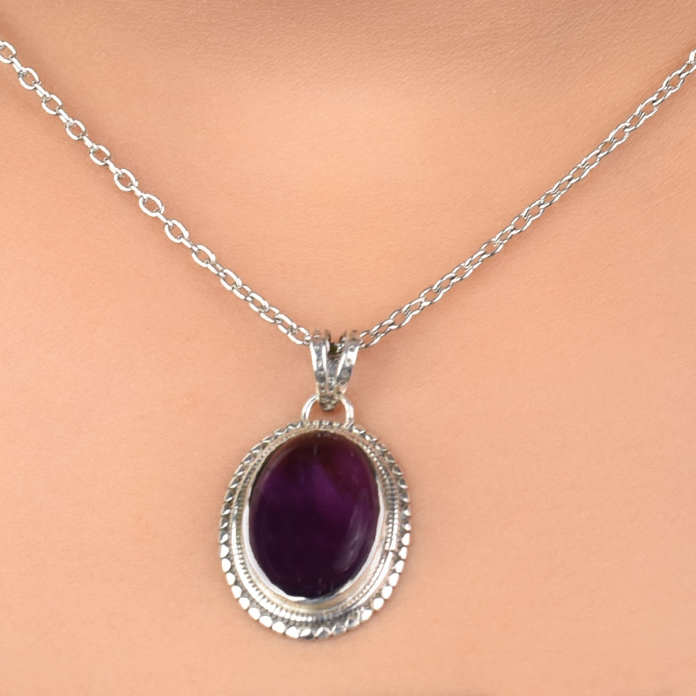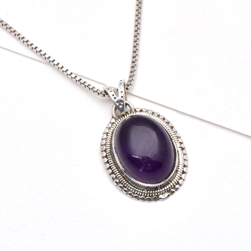 Lovely Amethyst Semi precious stone in Big Oval Shape In Sterling Silver. This pendant jewelry is Best For Gifting. Ideal Gift For All Occasions Such As Birthday, Anniversary, Wedding, Engagement. Gift It To That Someone Special Whom You Love And They Will Cherish It Forever.