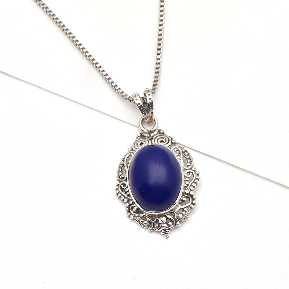 This elegant and traditional pendant comes in a dark midnight blue stone Tourmaline gemstone, which is often compared to looking at the night sky stars. A simple but stunning stone in a silver frame. Ideal for gifting and perfect for everyday or that special night out.