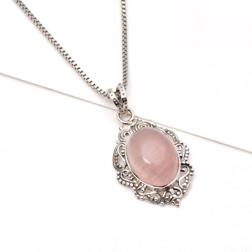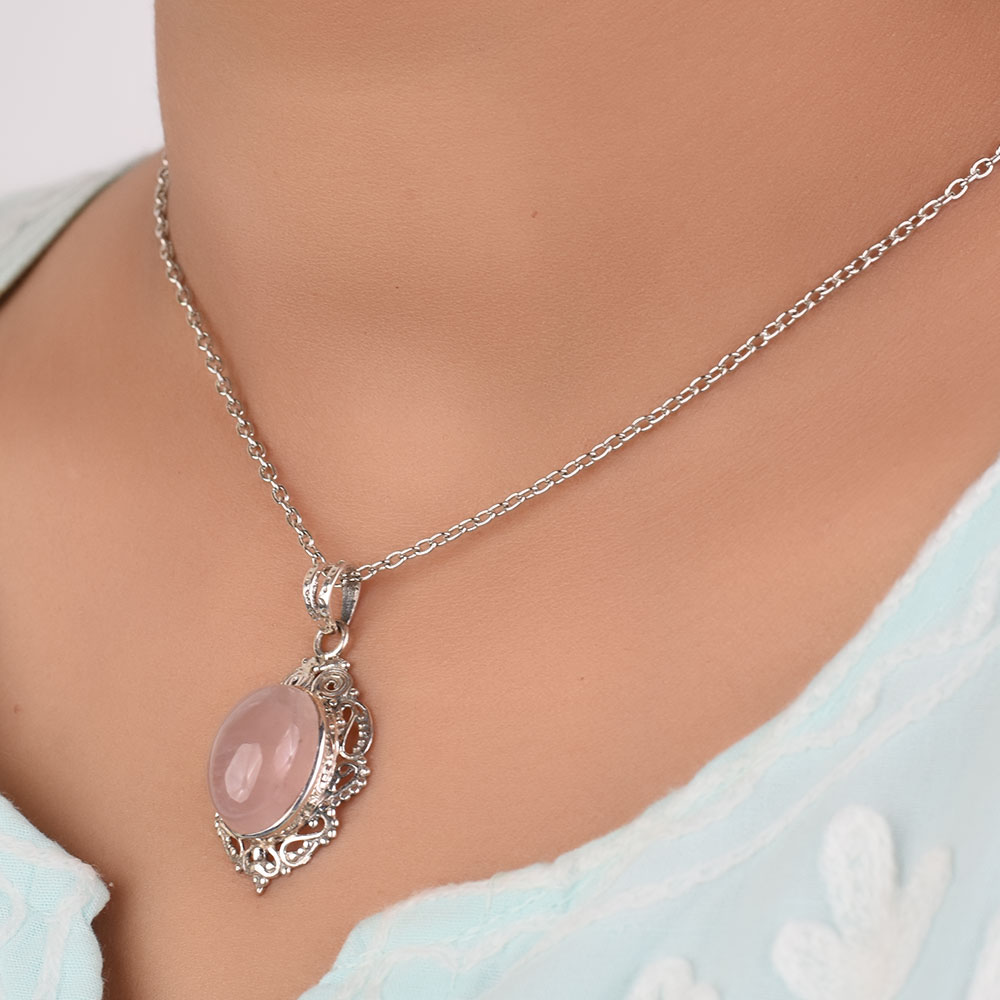 Handmade Oval Shape Subtle Pink Quartz In traditional engraved border k sterling Silver setting . This pendant jewelry is Best For Gifting. Ideal Gift For All Occasions Such As Birthday, Anniversary, Wedding, Engagement. Gift It To That Someone Special Whom You Love And They Will Cherish It Forever.
