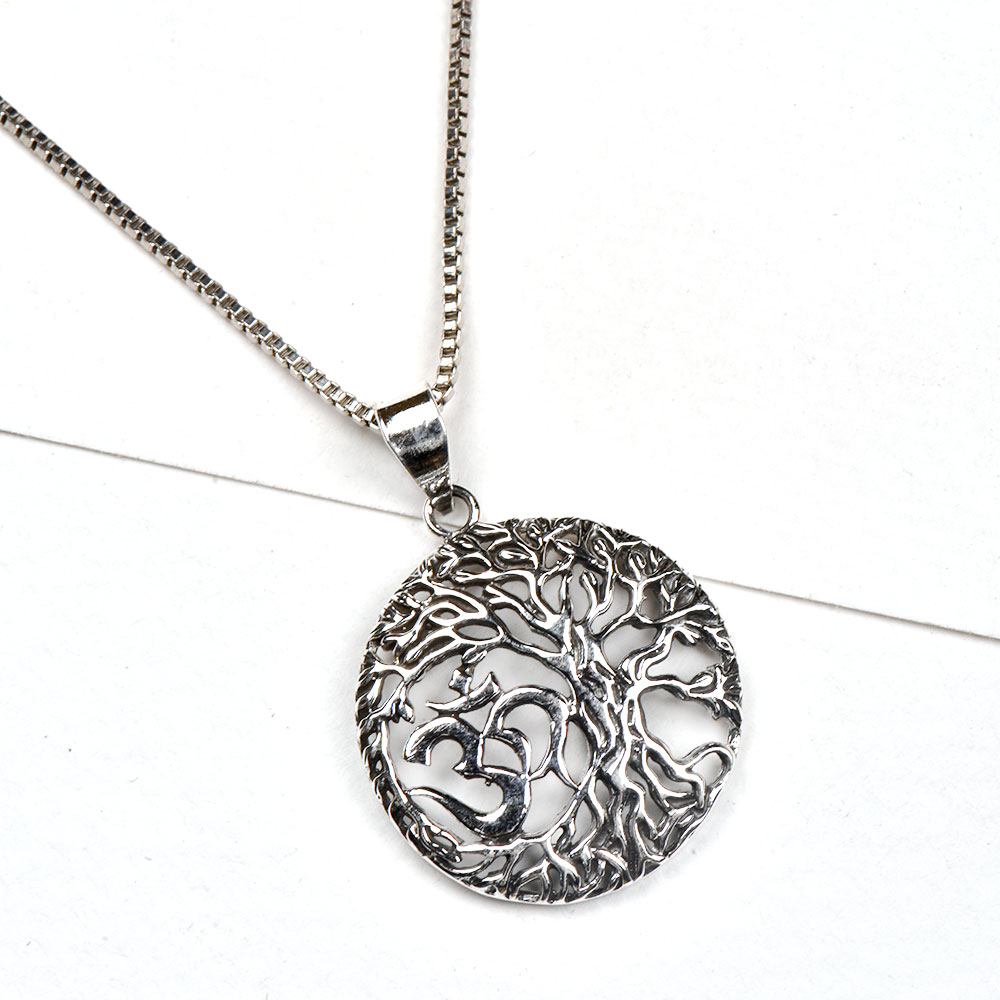 Show your spiritual side with this 92.5 Sterling Silver Pendant With a Tree of Life and the sacred aum symbol that spreads peace and tranquility .Wear it when you feel low or depressed this pendant gives you security and strength. Anniversary, Birthday gift , Anniversary gift , first date gift,Souvenier for your family and friends.