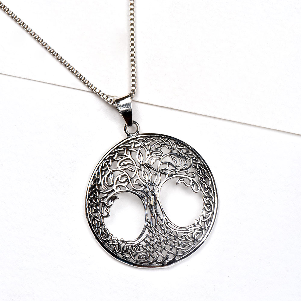This handmade 92.5 Sterling Silver pendant shows the tree of life wit its extended branches and roots that forms a complete ring with Celtic knot design. Can be worn at any occasion with traditional as well as modern attire. Gift it to your family and friends.