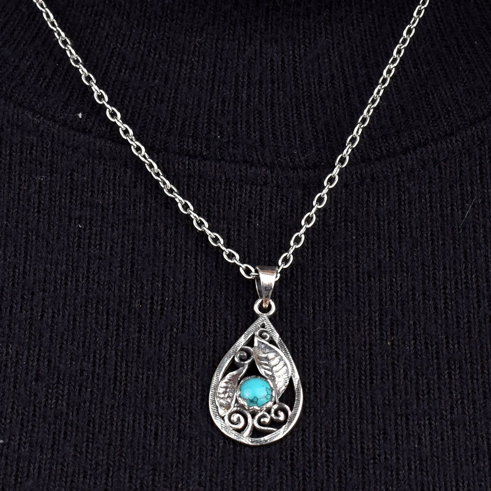 Finely crafted 92.5 sterling silver pendant jewelry with blue turquoise pendant is a lovely accessory when teamed with casual and formal wear, office wear, daily wear etc. perfect wedding, anniversary gift, Birthday gift , graduation ceremony, Naming ceremony , return gift and on many more functions.