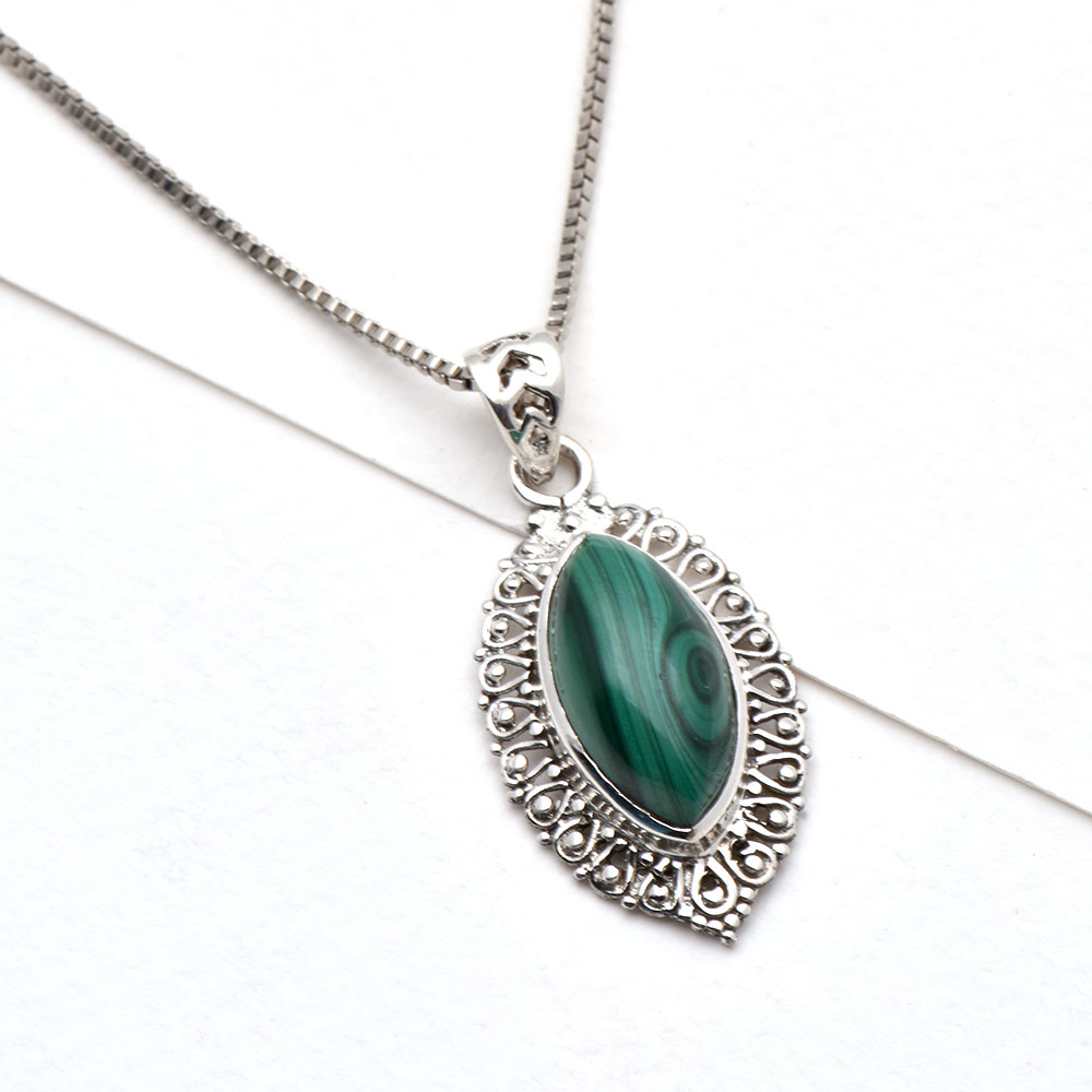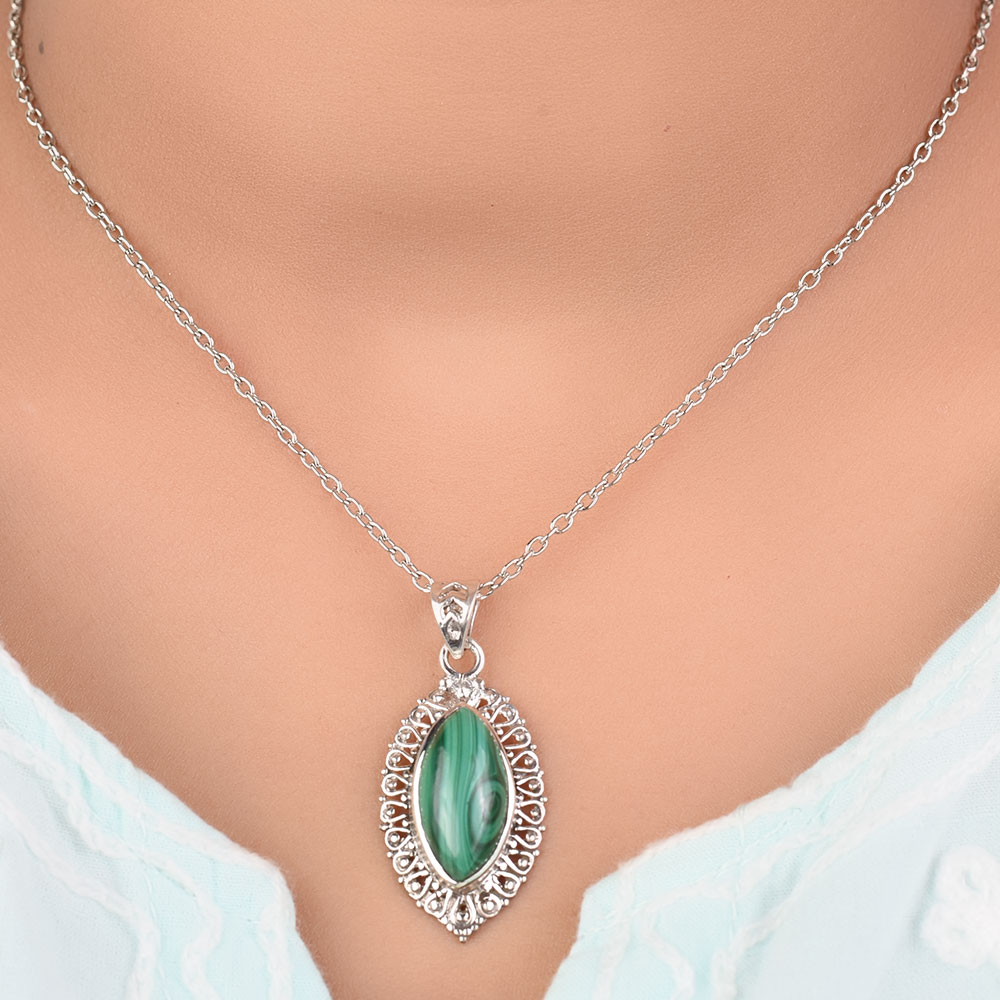 Dazzle everyone with our silver pendant chain for women made in 925 Sterling Silver and Semi-Precious Stone Green Malachite. Suitable for Any Season these pure silver pendant would make a great birthday gift, anniversary gift, mother's day gift, valentine's day gift, Christmas gift, wedding gift.